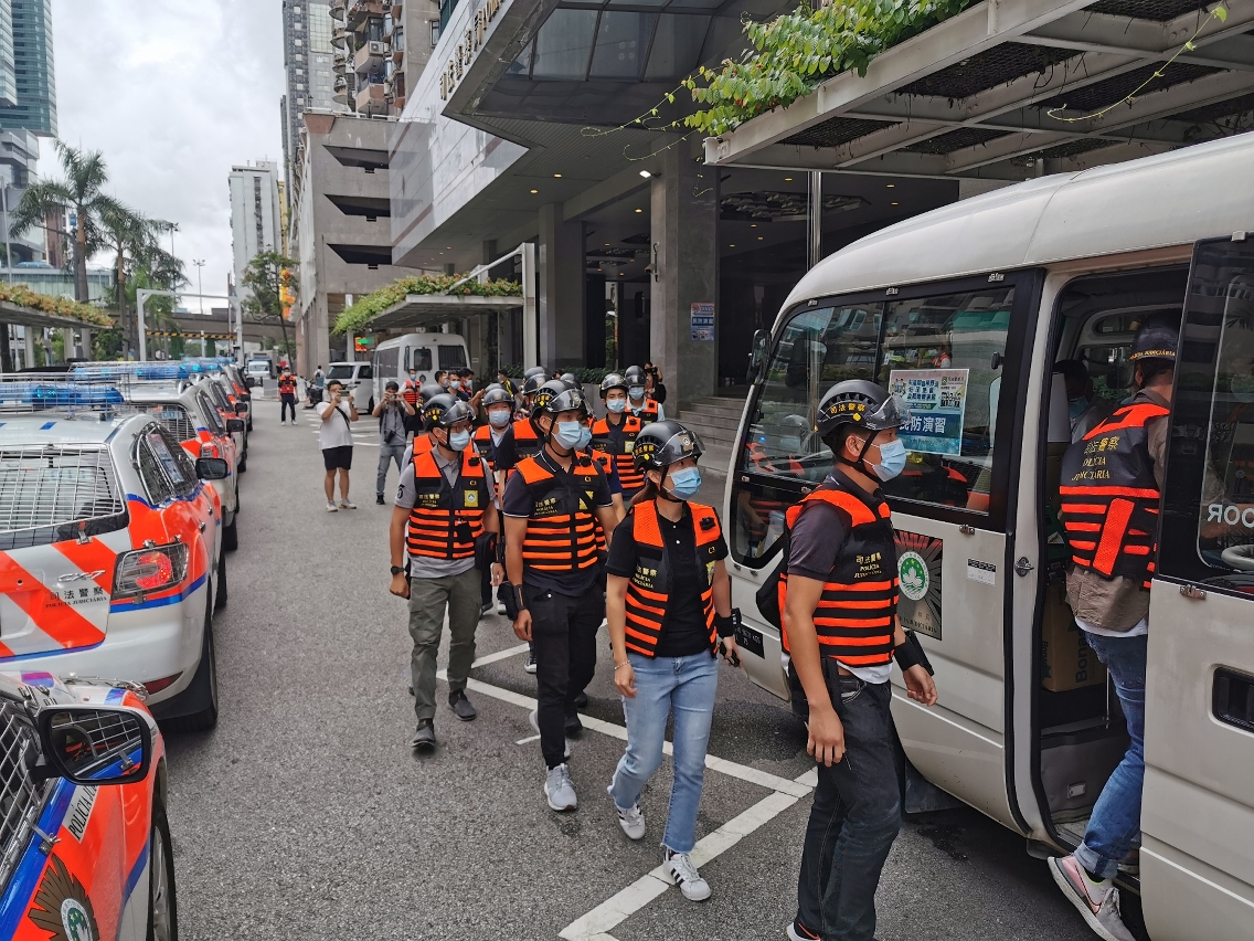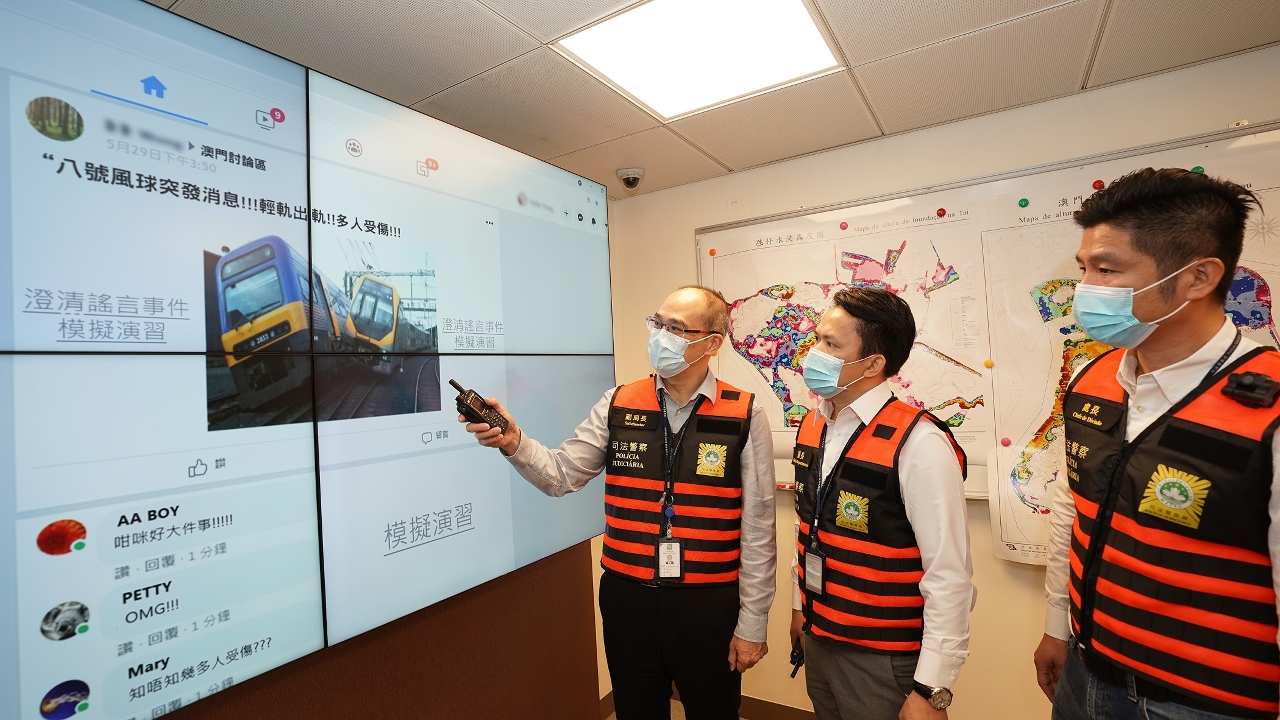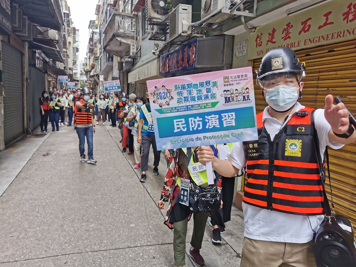 台风季节将至,为确保市民于台风期间风暴潮来袭时,能够按照保安当局指示快速、安全、有序撤离,在警察总局统筹下,司法警察局于5月29日下午再度举办 “台风期间风暴潮低洼地区疏散撤离计划”模拟演习,以优化各项应急预案,加强执行撤离工作人员和危机应变指挥中心,以及与街区坊会的沟通、协调和联动能力,进一步完善执行撤离计划的工作。
