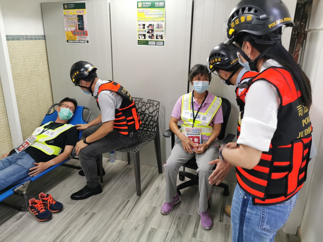 此外,司警局还联同街区坊会及部份居于低洼地区的居民进行演练,模拟协助居民前往需扶助人士集合点后,再撤离至避险中心,让居民瞭解撤离路线及如何配合警方的指示,以提高撤离工作速度和效率,保障居民的生命安全。