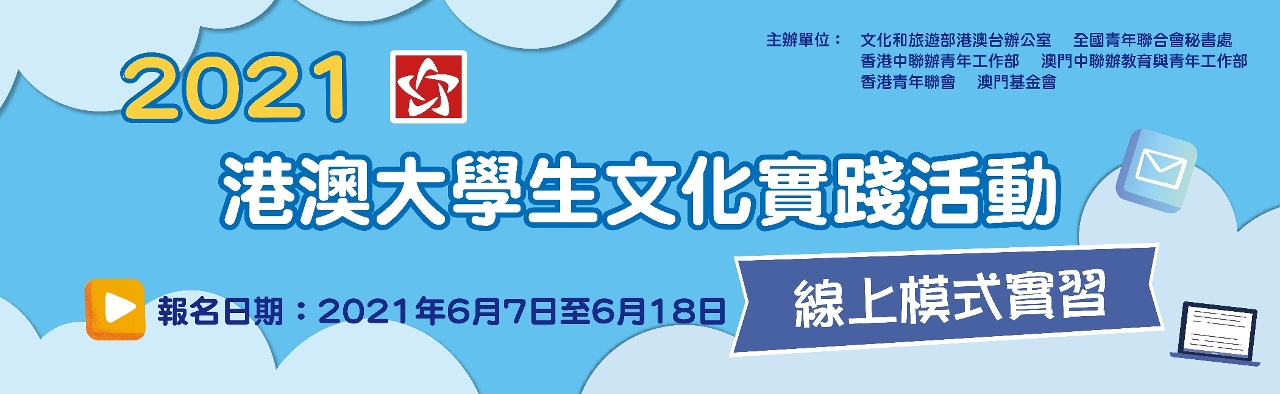 由文化和旅游部港澳台办、全国青年联合会秘书处、香港中联办青年工作部、澳门中联办教育与青年工作部、香港青年联会及澳门基金会联合举办的2021年“港澳大学生文化实践活动”由6月7日至6月18日期间接受报名。