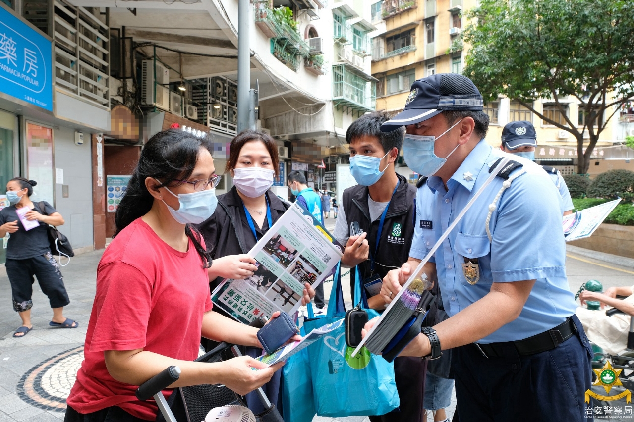 鉴于近期有市民反映本澳中区一带不时有人群聚集且没有做好防疫措施,而且有噪音情况出现,对市民造成一定的滋扰。于6月5日,治安警察局与环境保护局联同澳门街坊会联合总会宣传队人员,到三盏灯一带开展宣传防疫及《预防和控制环境噪音法》法律资讯,冀提高大众防疫及注意生活噪音的意识。