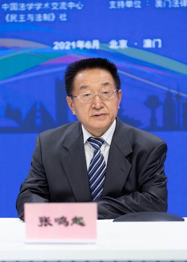 为让本澳青年学生深入了解和认识祖国的法制建设,以及最新的发展机遇,推动青年融入国家发展,中国法学会与法务局自2008年开办“澳门与内地青年法律交流周”,成功组织了超过300名本澳法律专业学生和青年律师学习和交流。为配合新冠肺炎疫情防控常态化的要求,今年我们继续聚首云端,开展交流周活动。在开班仪式上,张鸣起副会长致辞时表示,中国法学会一直高度重视内地与澳门的青年法律交流,今年交流周继续组织知名法学专家就《基本法》、“一国两制”和粤港澳大湾区相关内容,通过在线的方式给澳门法律青年进行授课解读,让大家全面准确理解基本法和“一国两制”,充分认识建设粤港澳大湾区是丰富“一国两制”实践的重大创举,是进一步深化改革、扩大开放的有力举措,青年朋友应更好知法学法用法,更好参与国家法治建设,更好融入祖国发展。他亦特别在致辞中对澳门青年提出三点期望:一、青年法律人要做《宪法》和《基本法》的坚定维护者;二、青年法律人要做中华文化和法治文化的有力传播者;三、青年法律人要做澳门与内地融合发展的积极参与者。