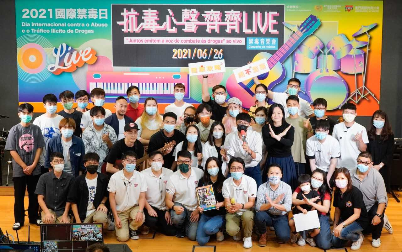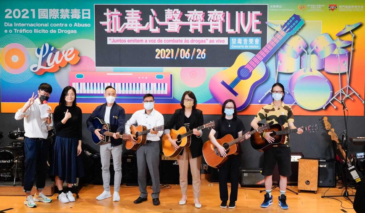 为响应2021国际禁毒日,社会工作局与澳门基督教青年会合办的“抗毒心声齐齐LIVE” 禁毒音乐会,已于6月26日下午在社工局健康生活教育园地举行,并于YMCA MACAU的Facebook专页同步网上直播,表演者透过音乐表达对健康无毒生活的支持,活动于在线线下共吸引近5,500人次参与。