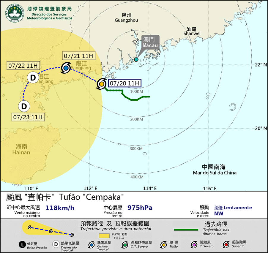 由于「查帕卡」在未来两三日仍在广东西岸徘徊,路径亦存在不确定性,请市民继续保持警觉及留意最新风暴消息。