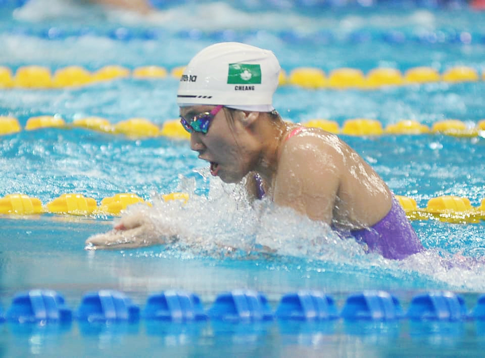 现时拥有6项长池和6项短池澳门游泳纪录的澳大教育学院研究生周文颢,先在大学男甲100蛙以今年个人的最快时间1分02秒73勇夺金牌,成功卫冕。之后他在50蛙游出28秒48,增添一面银牌。周文颢表示,这是疫情后的第一个重要赛事,觉得自己表现尚好。他感谢澳大的支持,让他从本科到硕士一直进步。「我在本科时曾获颁在读学生运动员奖学金及年度最佳运动员奖项。目前正跟孔兆伟教授做研究,对运动科学认识了很多,也令我在游泳上有了新的启发。」