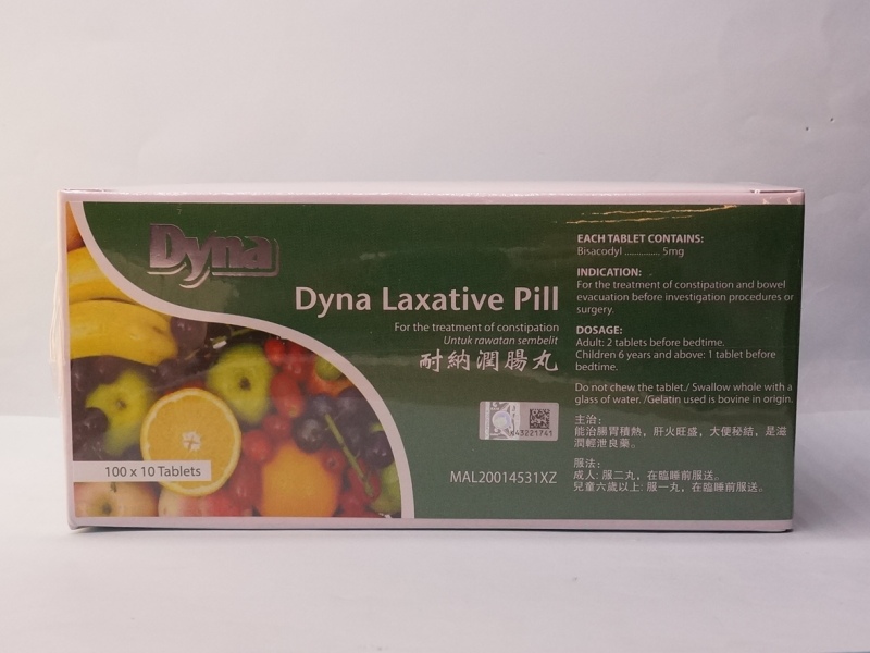 根据本澳药物入口商的通报,由马来西亚Dynapharm (M) Sdn Bhd所生产的一款泻药 “Dyna Laxative Pill 5mg” (含bisacodyl 5mg),由于生产商发现药物的主成份含量及杂质限度不符合质量标准,因此,该药物生产商自愿回收上述受影响药物。