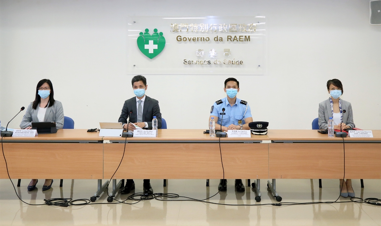 新型冠状病毒感染应变协调中心(下称应变协调中心)于今(2)日举行记者会,仁伯爵综合医院医务主任戴华浩医生、旅游局公共关系处蓝同好处长、治安警察局公共关系处李德辉处长、疾病预防控制中心传染病防制暨疾病监测部梁亦好协调员共同会见传媒。