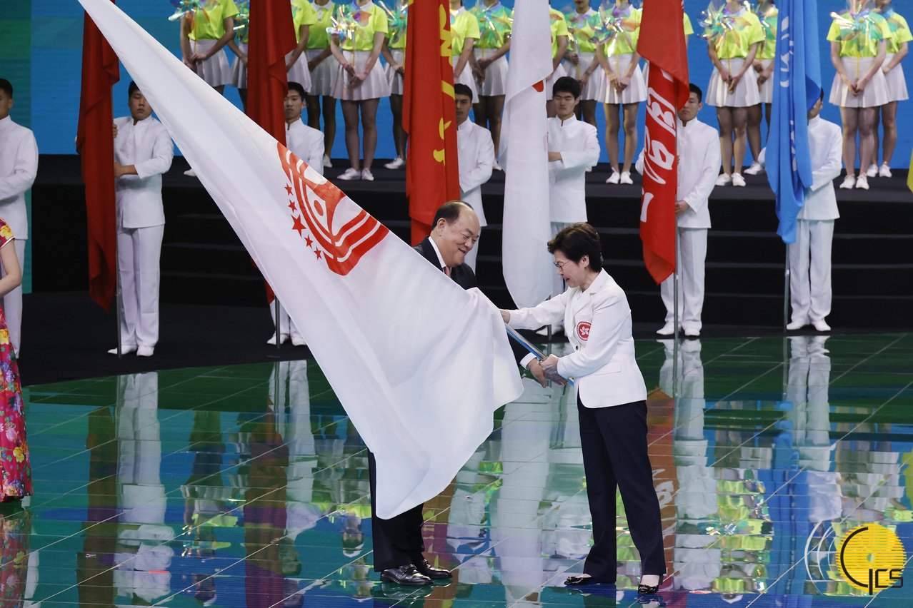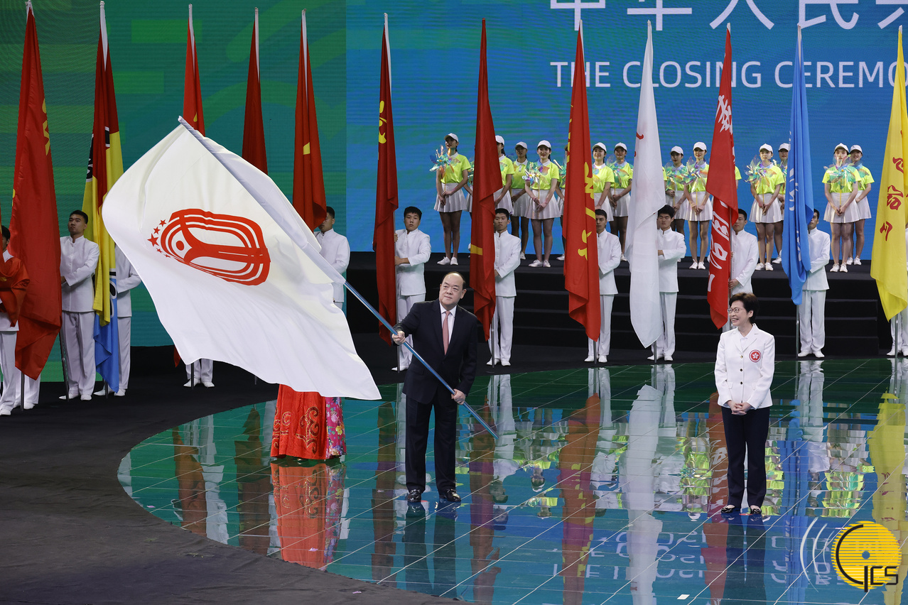 由国家体育总局主办、陕西省人民政府承办的中华人民共和国第十四届全国运动会,于今(27)日晚上8时于西安奥体中心体育馆举行闭幕式,国务院总理李克强在仪式上宣布全运会闭幕。行政长官贺一诚与广东省省长马兴瑞及香港特别行政区行政长官林郑月娥参加了第十五届全国运动会会旗交接仪式。
