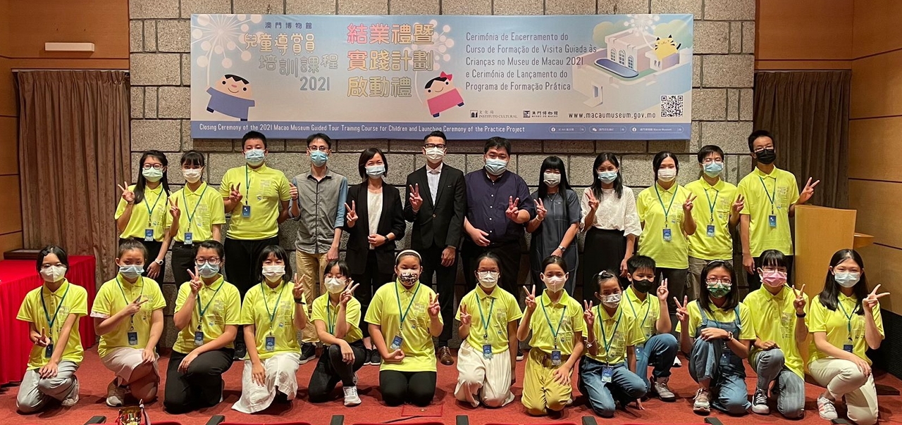 由文化局主办、澳门文化遗产协会协办的“2021年澳门博物馆儿童导赏员培训课程”于今日(10月30日)在澳门博物馆举行培训课程结业礼暨实践计划启动礼,由文化局文博厅厅长沈浩然、澳门博物馆馆长卢可茵、澳门文化遗产协会理事长王之炜主礼,课程导师代表及一众学员家长出席见证,现场气氛热烈温馨。