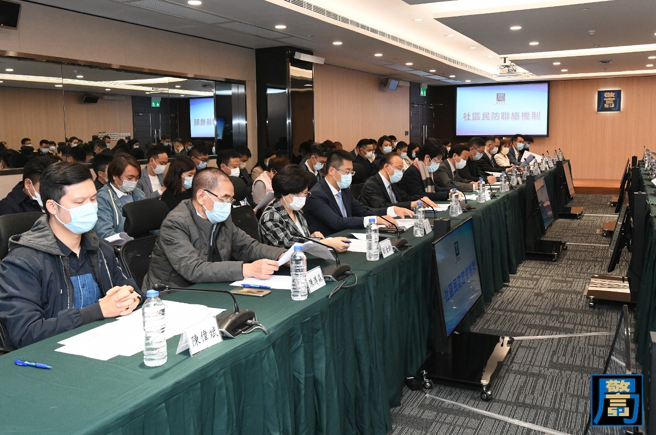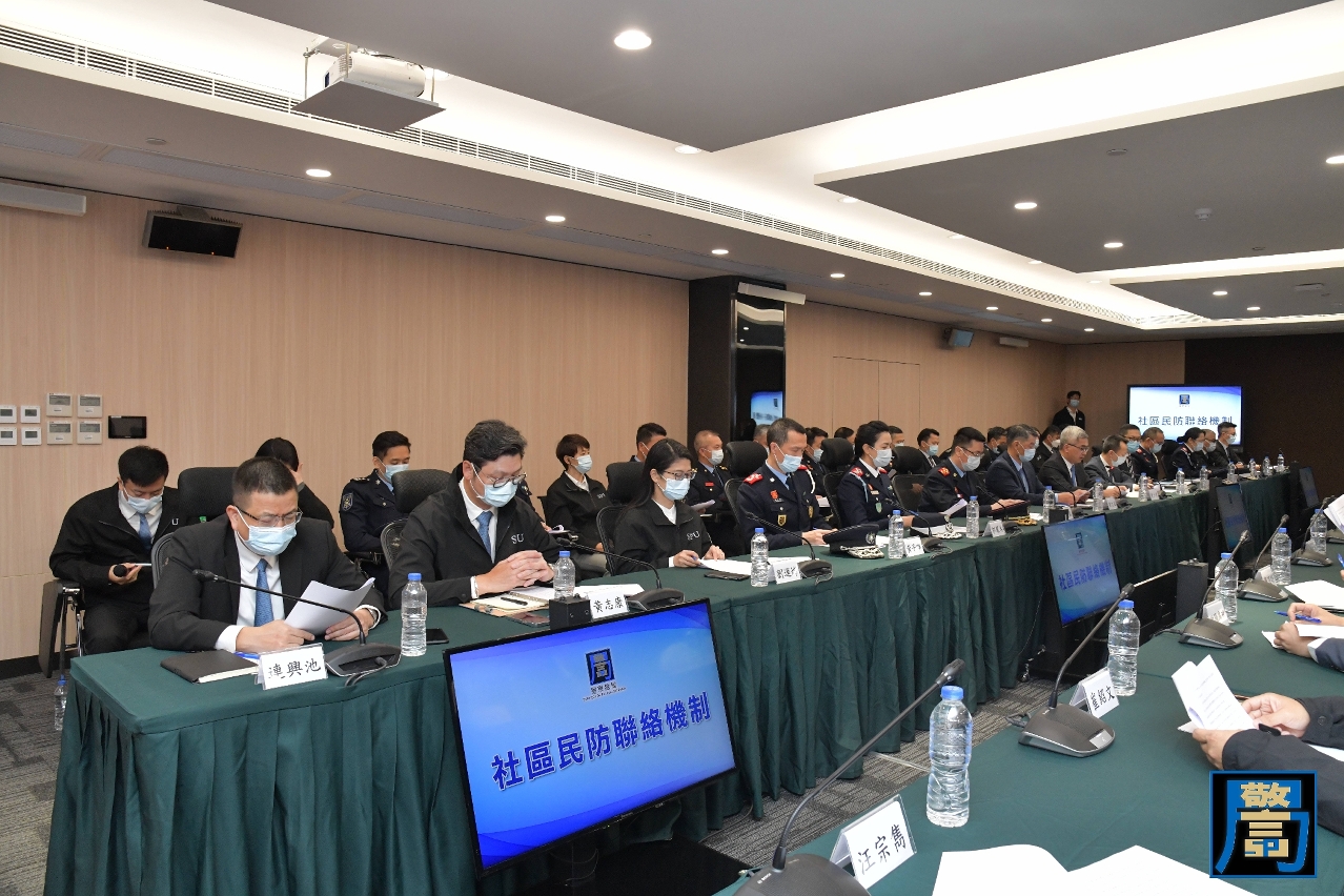 “社区民防联络机制”成立仪式于11月24日在北安出入境事务大楼民防行动中心举行,保安司司长黄少泽、警察总局局长梁文昌、澳门海关关长黄文忠联同多名保安范畴领导出席仪式,澳门物业管理业商会刘艺良永远会长、澳门街坊会联合总会吴小丽会长、澳门工会联合总会李从正理事长、澳门中华总商会黄国胜副理事长、澳门建筑机械工程商会梁超通会长、中国建筑工程(澳门)有限公司张杰董事总经理、澳门志愿者总会白琪文会长、澳门妇女联合总会刘金玲副会长、澳门归侨总会黄玉诗副会长、澳门社会民生促进会陈溥森会长、民众建澳联盟欧阳广球副理事长、澳门中华新青年协会陈伟斌副监事长、澳门中华学生联合总会汪宗隽时事分析员等共40位社团机构代表应邀参与。