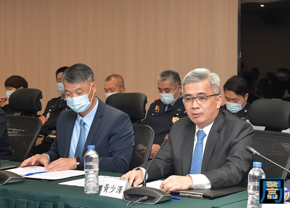 保安司司长黄少泽主持仪式并致辞,黄少泽司长感谢社会各界对民防工作的支持和配合,指出自2017年“天鸽”及2018年 “山竹”袭澳时,由各社团组织和市民自发参与的志愿人员积极配合保安部队,和相关政府部门的人员一起,冲锋在民防工作的最前线,为防灾抗灾工作发挥了重要的作用。冀透过成立“社区民防联络机制”,协调、组织社会团体与民防架构成员合作,强化政府与民间组织的协作能力,促进民防工作的开展;同时透过有关机制与各社区联络主任积极交流,可即时就民防方面的资讯或需求交换意见,以提升社区各项防灾减灾措施的效果。