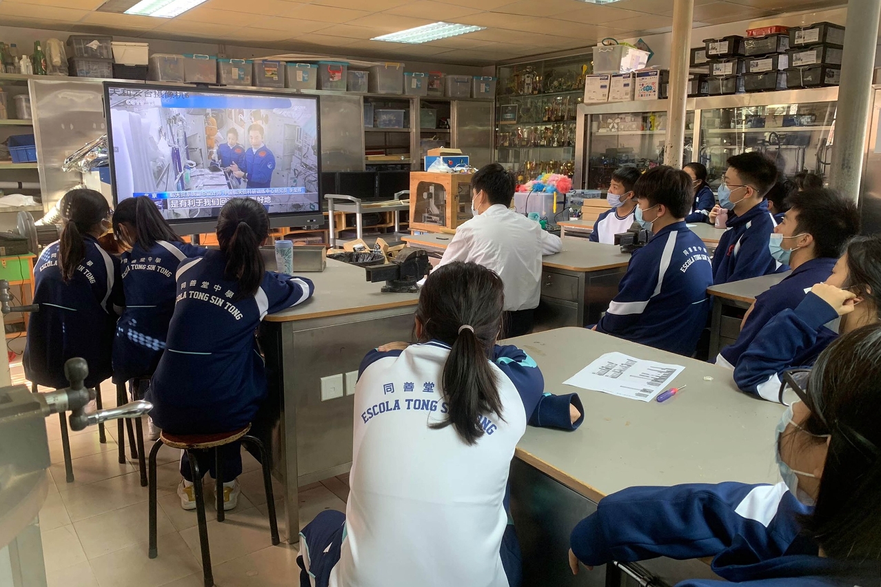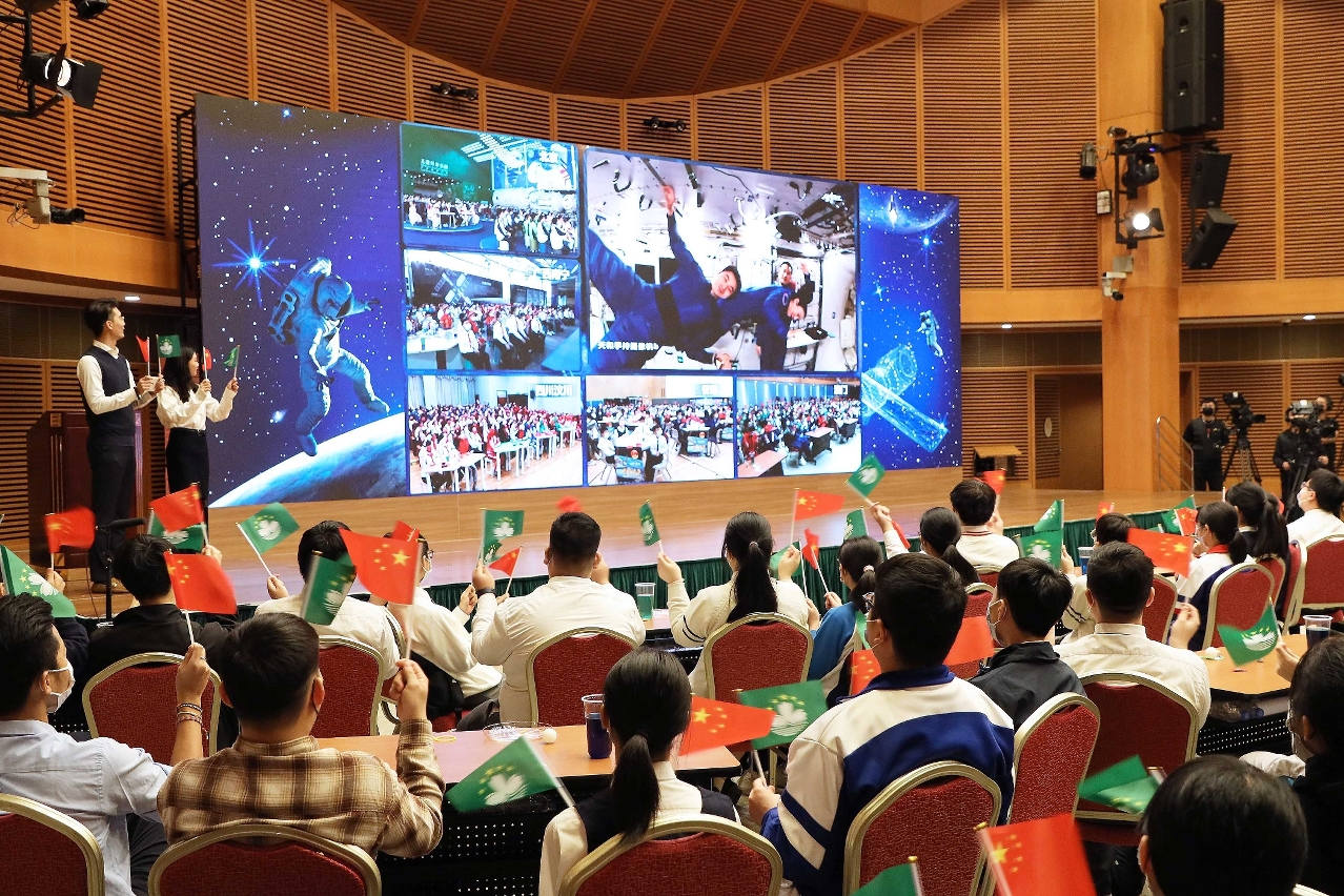 神舟十三号飞行任务科普教育活动——“天宫课堂”太空授课活动于2021年12月9日下午举行,澳门作为全国太空授课活动的其中一个分会场,教育及青年发展局组织了64个校部近170名中、小学生于澳门科学馆与天宫空间站卫星连线,参与由神舟十三号载人飞行任务航天员王亚平带领的“天宫课堂”太空授课活动,并开展“天地对话”。同时,教青局亦组织全澳中小学生在校内观看直播是次太空授课,并藉此向学生开展科普及认识国家航天事业发展的教育活动。