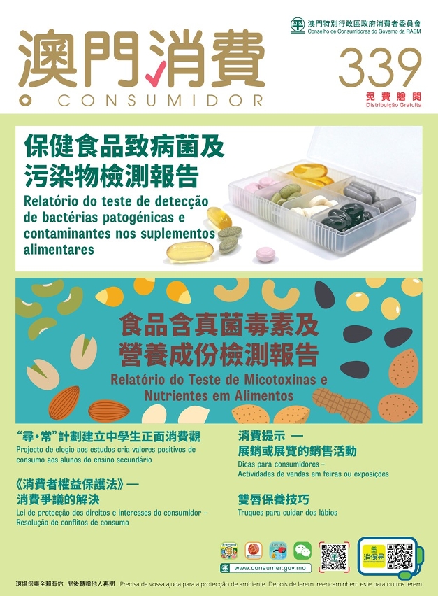 第339期《澳门消费》公布保健食品、坚果及豆制食品两份检测报告,被抽检的全部样本均符合检测的安全标准。另外,为配合即将于2022年1月1日生效的《消费者权益保护法》(下称“消保法”),《澳门消费》将继续以专文介绍“消保法”。