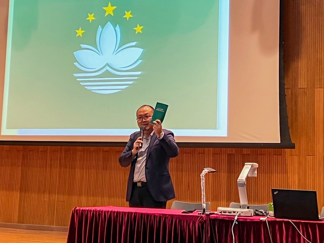骆伟建则介绍制定宪法和实施宪法的目标、宪法与基本法的核心原则,以及基本法与“一国两制”的关系,让教职员对“一国两制”有全面且准确的认知。他还指出“一国两制”是人们的生活方式,强调和谐的中央与特区关系对社会稳定、经济发展及民生至关重要。另外,江华讲述了中国的建国历史,并播放许多珍贵的历史片段,从中带出维护国家安全的核心要义及推行国家安全法的必要性,道出有国才有家,国家主权独立及领土完整对维护澳门政治稳定、经济发展、市民安居乐业起着关键的作用。