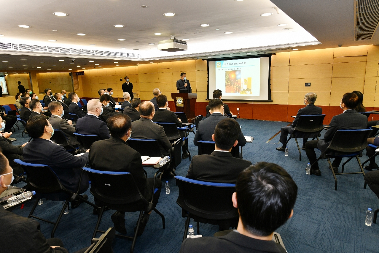 会上,司警局人员向与会代表介绍了现有治安通报机制的运作情况和成效,在2021年1月至11月期间,司警局透过上述通报机制快速接收到酒店业界通报的最新治安讯息,及时跟进调查,成功侦破凶杀、抢劫、操纵卖淫、使用伪证、逾期逗留及非法收留等案件,警民合作成效显着。司警局人员还讲解如何强化酒店保安和管理工作,防治卖淫、毒品、非法兑换货币活动而衍生的盗窃、抢劫等犯罪,以及当酒店场所发生刑事案件时,如何保护案发现场和配合警方侦查等防罪资讯,冀能增强业界对相关犯罪活动的警觉性和应对能力。