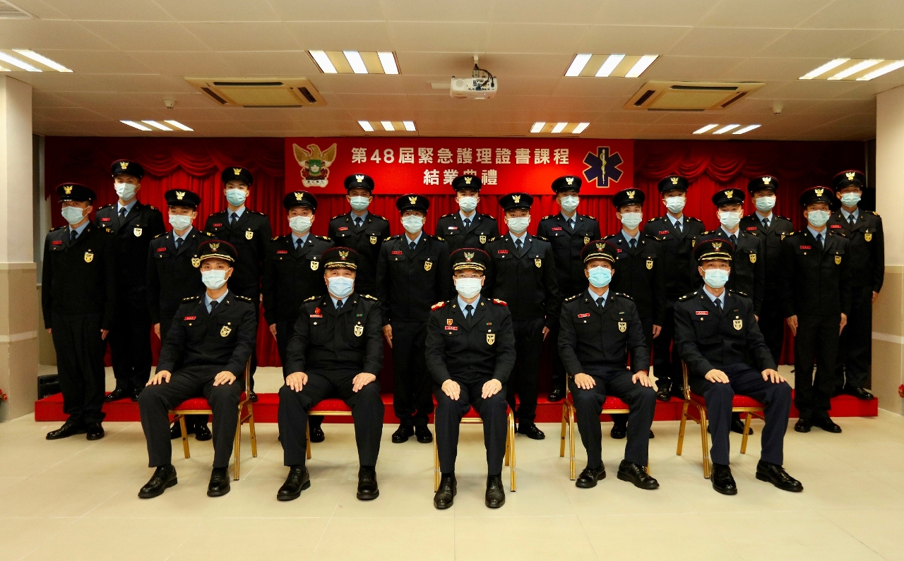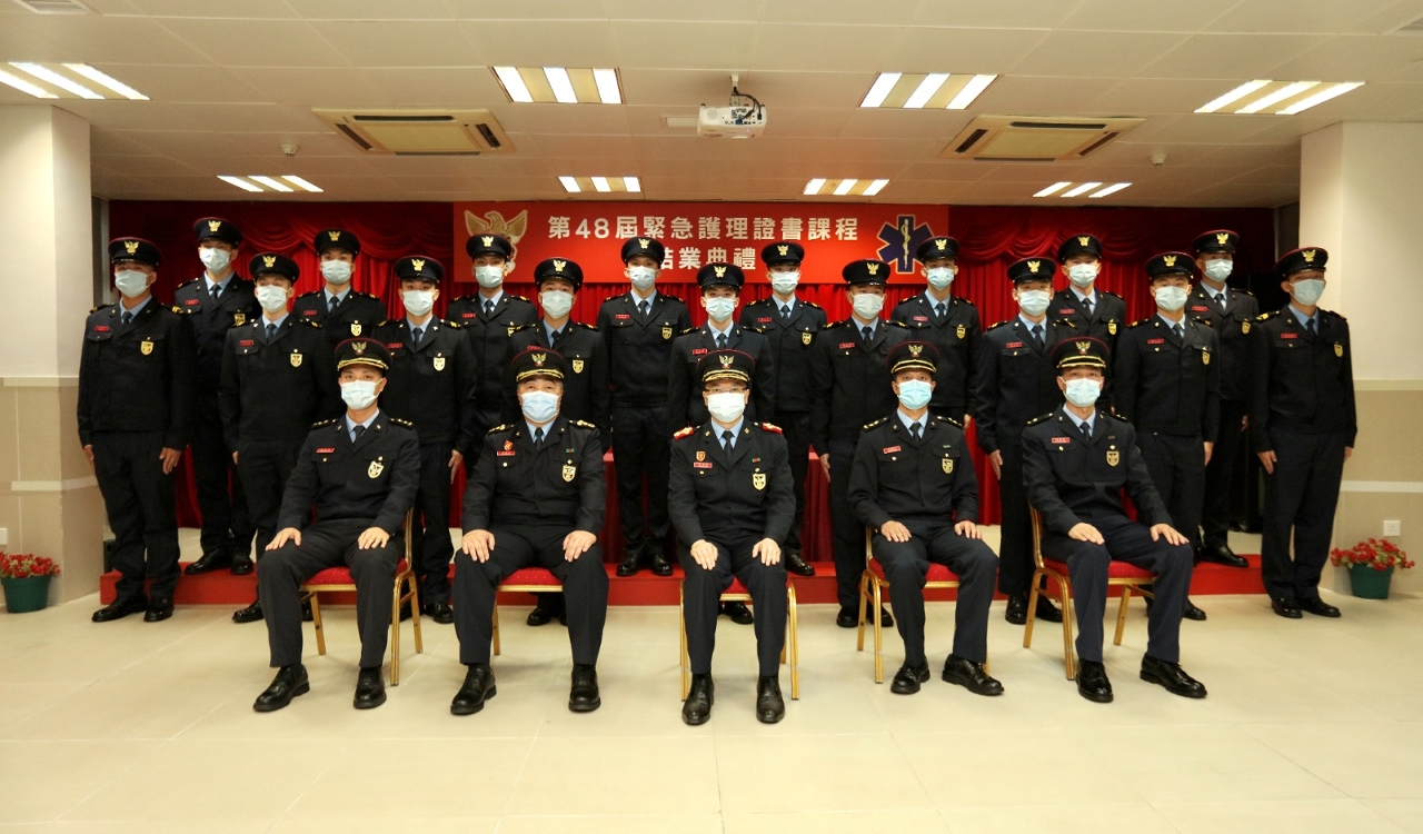于2021年12月15 日下午,消防局在黑沙环消防学校举行《第48届紧急护理证书课程》结业仪式,一共有33位消防员修读课程,在经过约三个月的专业培训,并通过考核后,正式成为具备院前紧急护理专业资格的救护员。仪式由消防局 梁毓森局长担任主礼嘉宾,并致词勉励结业学员须时刻认真履行救急扶危之责任,尽忠职守,为市民提供专业的救护服务。