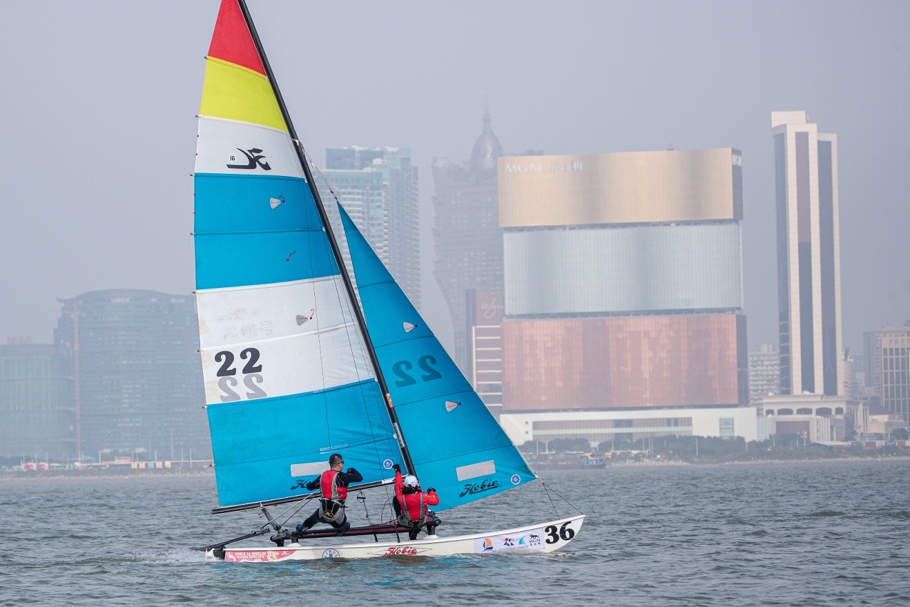 「澳门杯国际帆船赛」及「粤港澳大湾区杯帆船赛」今日各进行了两轮赛事。「澳门杯国际帆船赛」中,木屋烧烤队夺得第一轮赛事的第一名,广西北海老男孩梦之队仅以两个船位之差屈居第二,赣州虔尚汇白浪帆船队也以极小的领先优势超过意大利游艇帆船队获得第三。第二轮赛事中,意大利游艇帆船队从起航便建立了领先优势,并一直保持到终点拿下第一名,同时让该队在总成绩榜升至第三位。总结三天比赛成绩,木屋烧烤队仍以总分13分排第一位,广西北海老男孩梦之队以4分之差排第二,第三位是意大利游艇帆船队。
