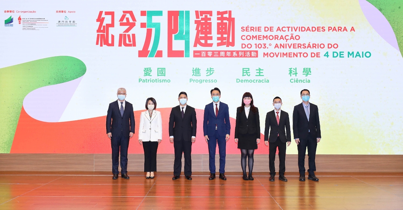 同日上午,教青局与纪念“五‧四”青年节系列活动筹备委员会于澳门科学馆会议厅举办纪念“五四运动”一百零三周年系列活动启动礼,并于启动礼结束后举行“五四精神线上研讨会”。研讨会邀请到澳门科技大学副校长庞川和中央团校(中国青年政治学院)青年运动研究中心主任、团研所所长吴庆教授,向现场的青年学生以五四精神为主题作分享,以及介绍共青团建团一百周年的发展事迹,让澳门青年了解“五四运动”后爱国组织及社团的成立历程。