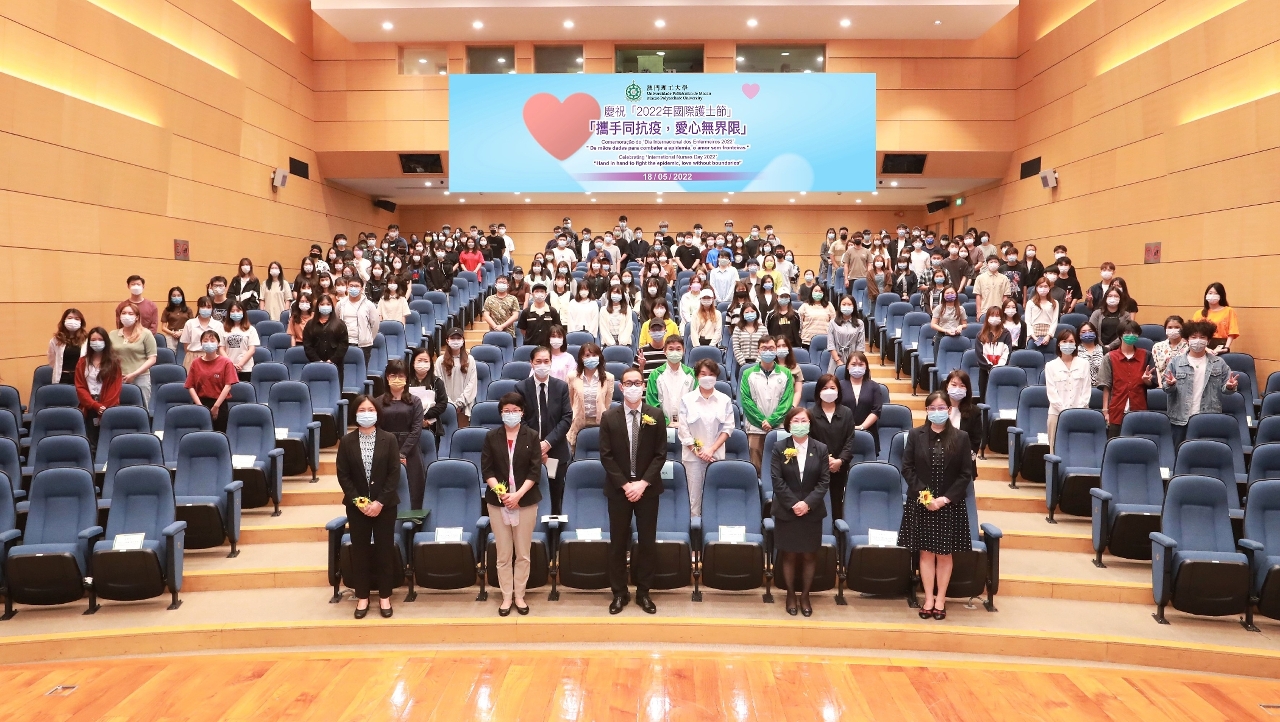 为庆祝“国际护士节”,澳门理工大学健康科学及体育学院于5月18日在澳理大礼堂举行《“携手同抗疫,爱心无界限” 国际防疫研讨会》,来自葡萄牙、内地、香港及澳门的专家学者分享世界各地的前线抗疫工作,弘扬南丁格尔精神,澳理大师生二百多人出席研讨会,气氛热烈。