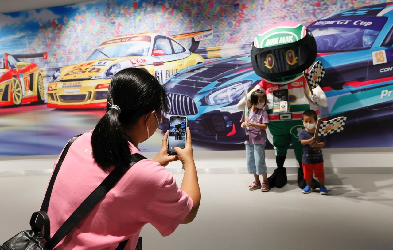 澳门居民和旅客今天(1日)可免费入场参观澳门大赛车博物馆,并有机会与澳门旅游吉祥物“麦麦”拍照留念,完成指定任务更可换领礼品,尤其吸引家庭亲子客入场参观,现场气氛热闹。