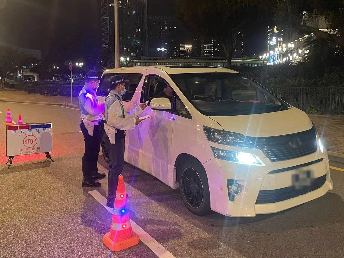于6月25日至26日凌晨进行相关行动中,合共截查了126人(81男、45女),当中没有发现违法违规行为;查车方面,共截查33辆车辆,检控3宗违例,涉及未能出示驾驶执照、汽车所有权登记凭证、车辆登记折及有效保险文件。