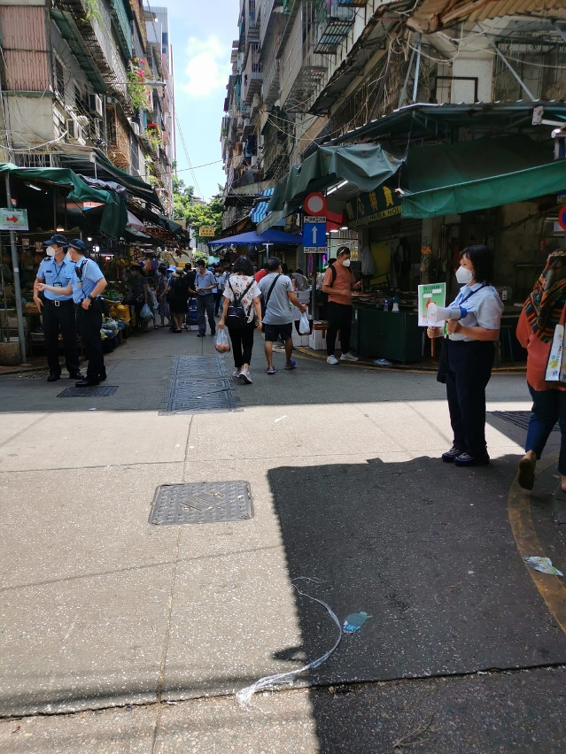 市政署亦持续评估各街市的实际情况采取人流管制措施,早前已分别于人流较多的沙梨头街市、佑汉街市及下环街市外架设排队动线,由工作人员指示市民有序进入街市,同时亦为长者及行动不便人士安排特别通道。