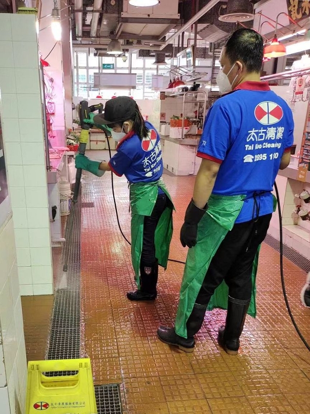 为保障街市内设施的卫生情况,市政署加派人员定时以稀释漂白水清抹门把、扶手电梯、升降机按钮等设施,并在每天中午休市时段,清洗公共廊道,每晚收市后,以高压水枪清洗、喷雾机消毒等进行彻底的深层清洁消毒。