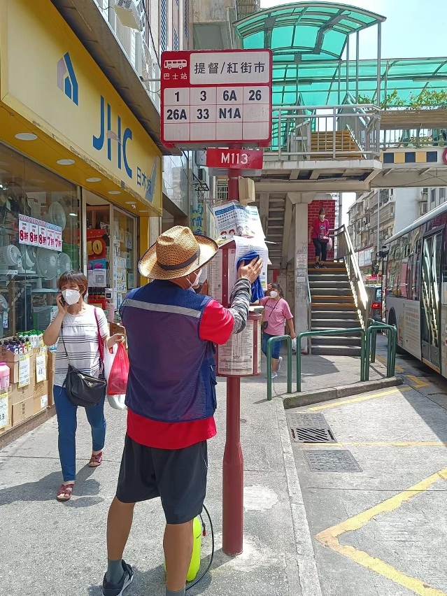 自本波疫情爆发以来,市政署遵循卫生部门的防疫指引,持续协调清洁专营公司加派人员、洗街车,穿梭全澳各区,用稀释漂白水以高压水枪清洗行人道、马路。同时,增派一倍工作人员在各区以稀释漂白水清抹公共电梯扶手、巴士站候车亭、巴士站牌、咪表等公共设施,并对公共渠口、行人道扶手及栏杆喷洒消毒液,竭力保持街区环境清洁卫生。