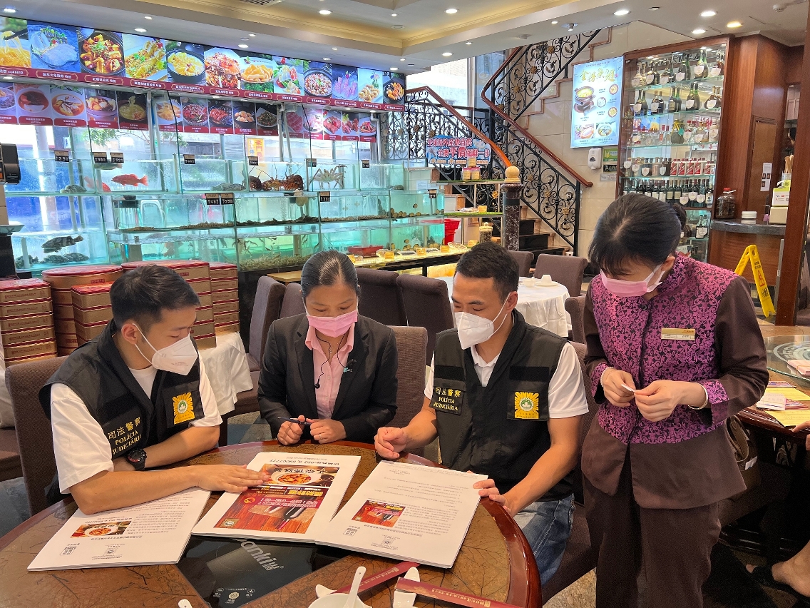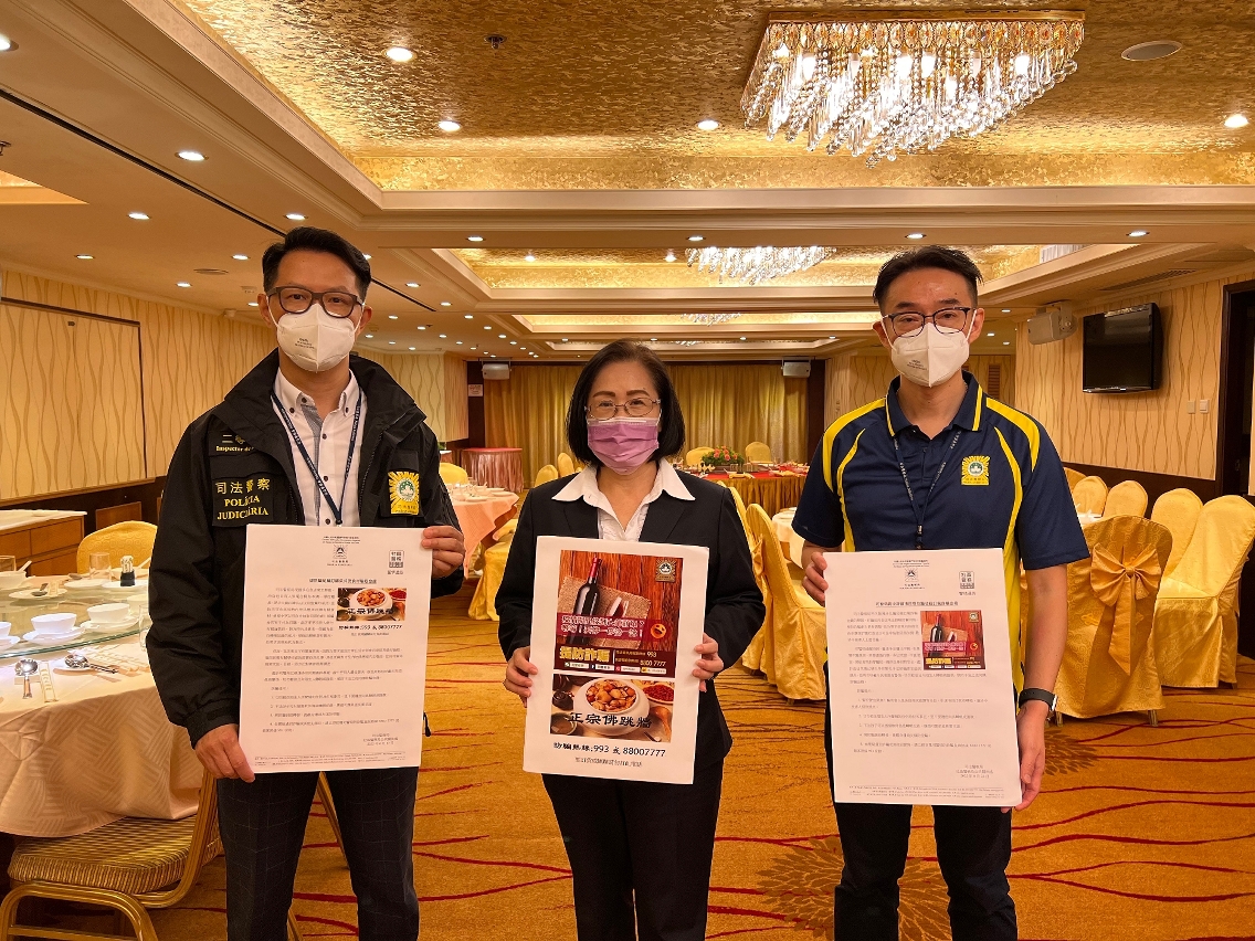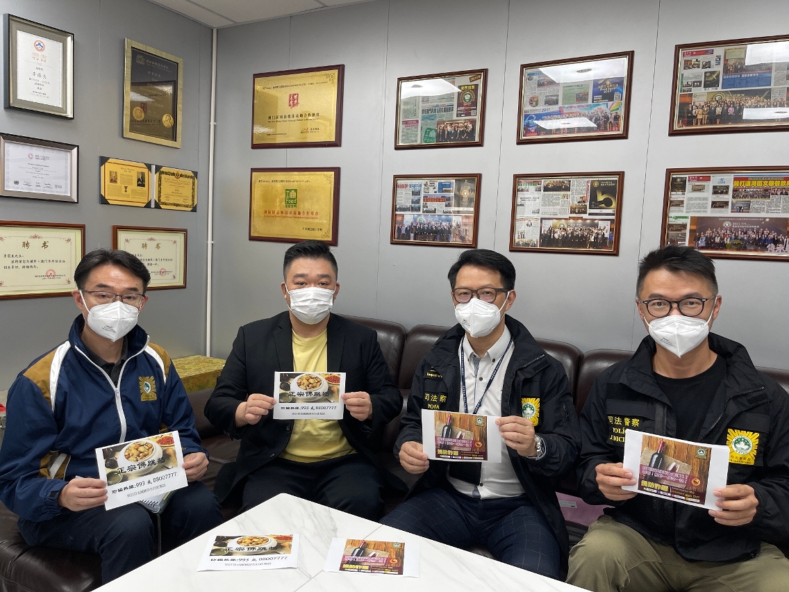 由于近期本澳及邻近地区均发生有不法之徒藉向食店订购食材或红酒等方式进行诈骗,为提高饮食业界的防骗意识,司法警察局走访业界展开防骗宣传,冀促进警民合作,共同防罪灭罪。