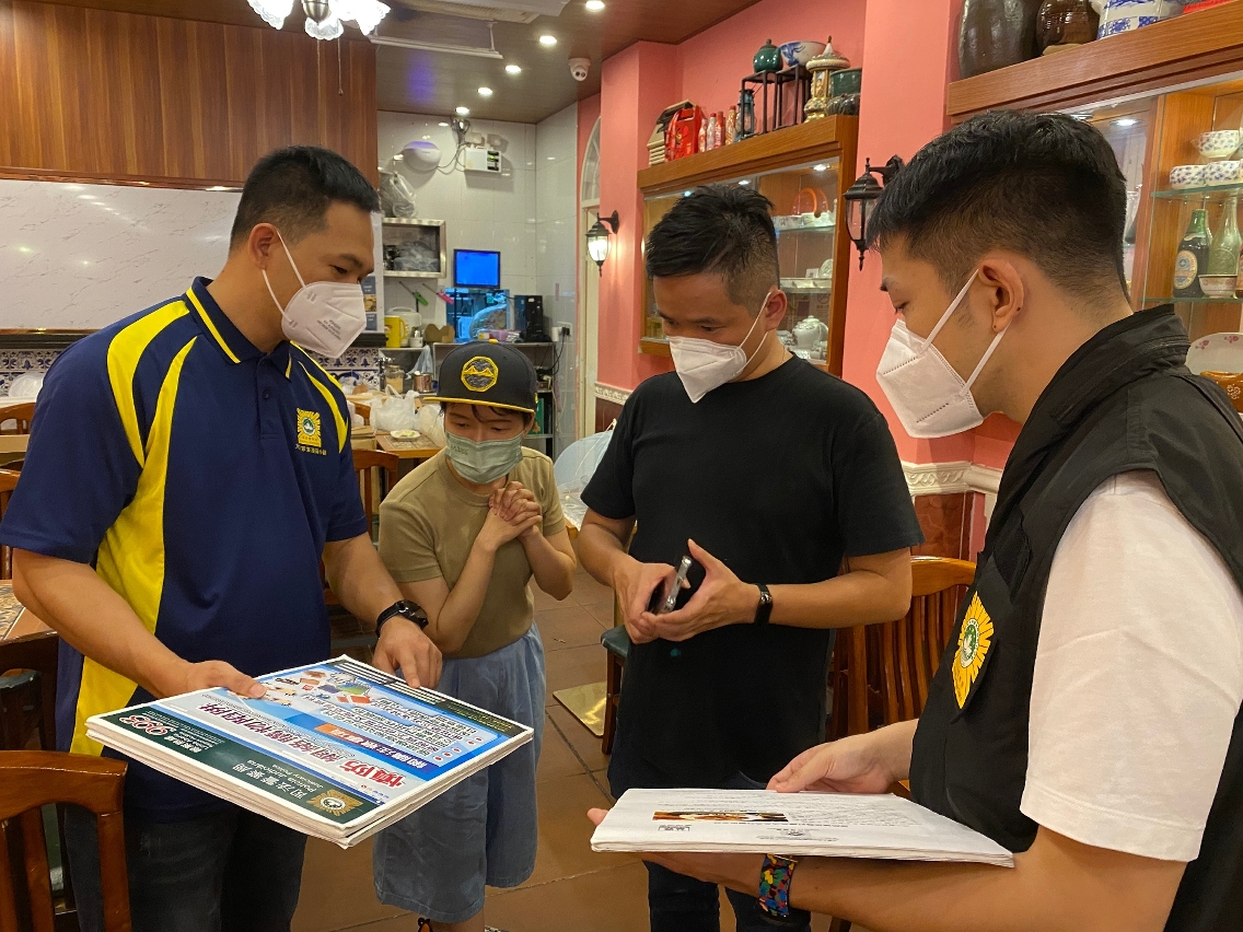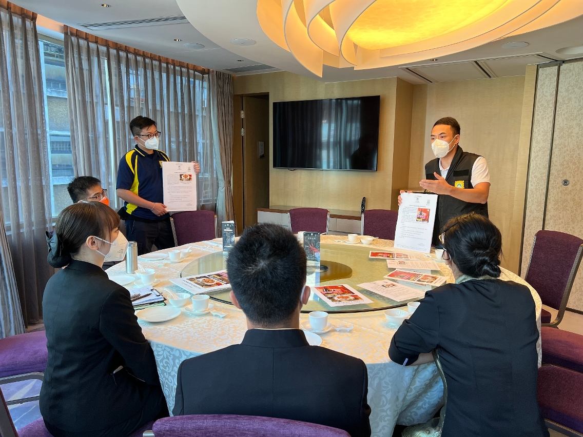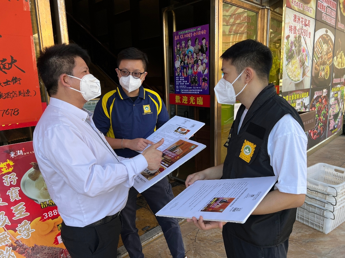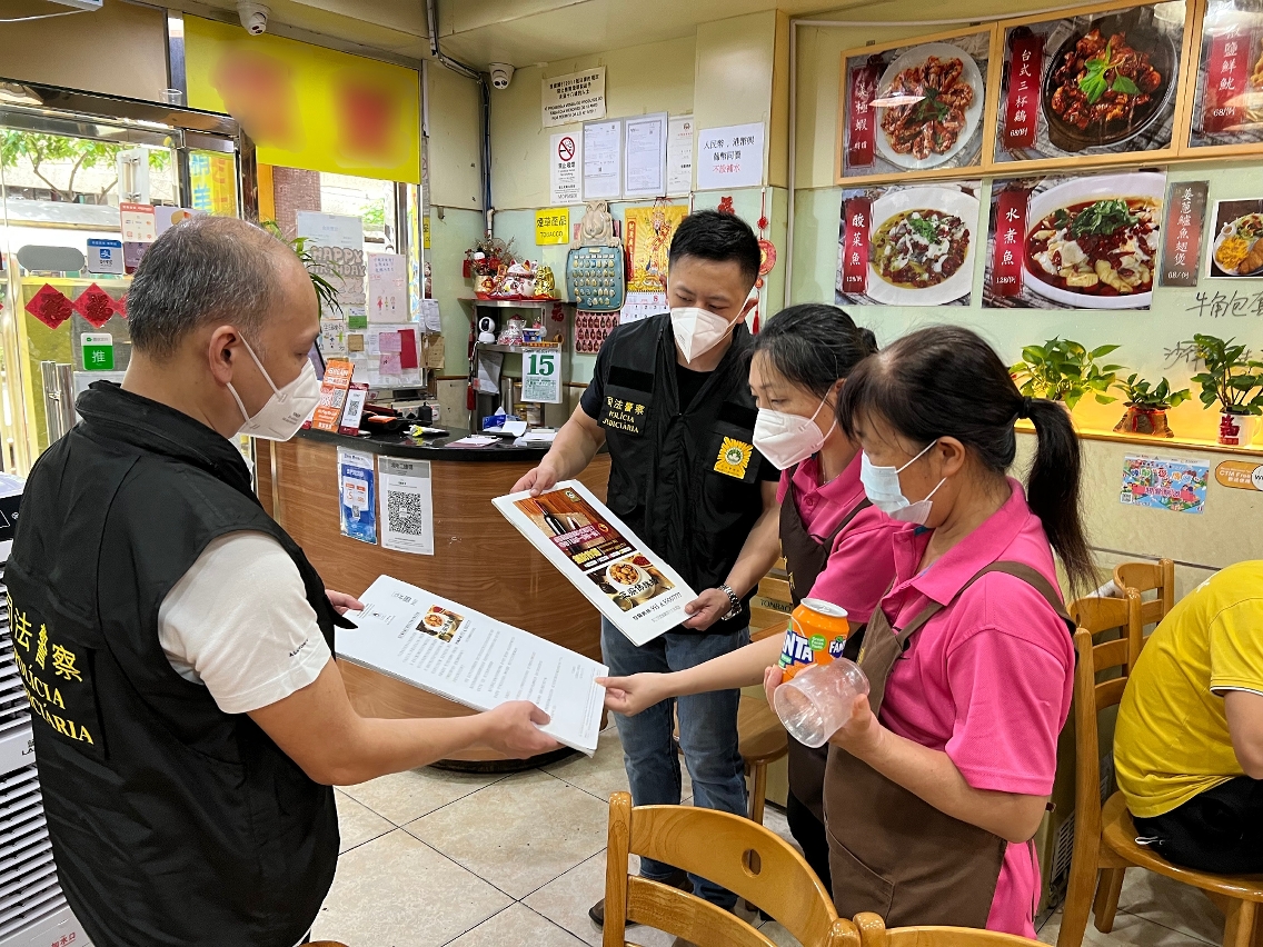 由于近期本澳及邻近地区均发生有不法之徒藉向食店订购食材或红酒等方式进行诈骗,为提高饮食业界的防骗意识,司法警察局走访业界展开防骗宣传,冀促进警民合作,共同防罪灭罪。