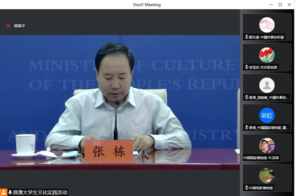 由文化和旅游部港澳台办公室、全国青年联合会秘书处、香港中联办青年工作部、澳门中联办教育与青年工作部、香港青年联会以及澳门基金会共同主办的2022年“港澳大学生文化实践活动”于8月26日下午举行线上闭幕式。文化和旅游部港澳台办二级巡视员张栋、办公室处长李文沛、澳门中联办教育与青年工作部副处长马晓伟、香港中联办青工部青年处处长王凤钰、澳门基金会主席吴志良、香港青年联会主席杨政龙、中国美术馆院长吴为山及各承办单位和相关实习机构代表共同参与。