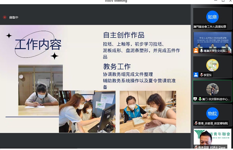 多位港澳实习生在闭幕式中表示,虽然本年度是在线上参与北京不同文化机构的实习,但能获得与其他成长背景不同的实习生以线上的模式共同学习分享、筹办活动等机会均表示获益良多,也感受到导师们的用心,感谢各主办单位为他们的实习生活提供了美好的回忆。