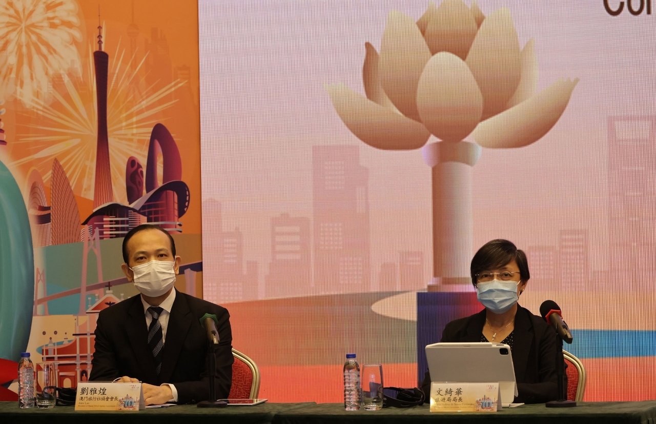 主办单位旅游局联同承办单位澳门旅行社协会于今(2日)举行记者招待会介绍第十届旅博会内容。旅游局局长文绮华、副局长程卫东及许耀明,以及澳门旅行社协会会长刘雅煌等出席。