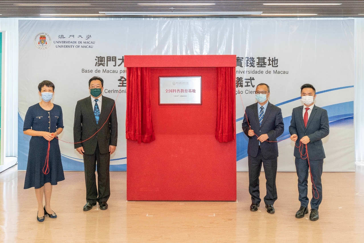 仪式上,中国科协党组副书记、全国人大常委徐延豪向澳大校长宋永华颁授“全国科普教育基地”证书,及后徐延豪、宋永华、中央人民政府驻澳门特别行政区联络办公室教育与青年工作部部长徐婷、澳门特别行政区政府教育及青年发展局副局长丁少雄共同为基地揭牌。