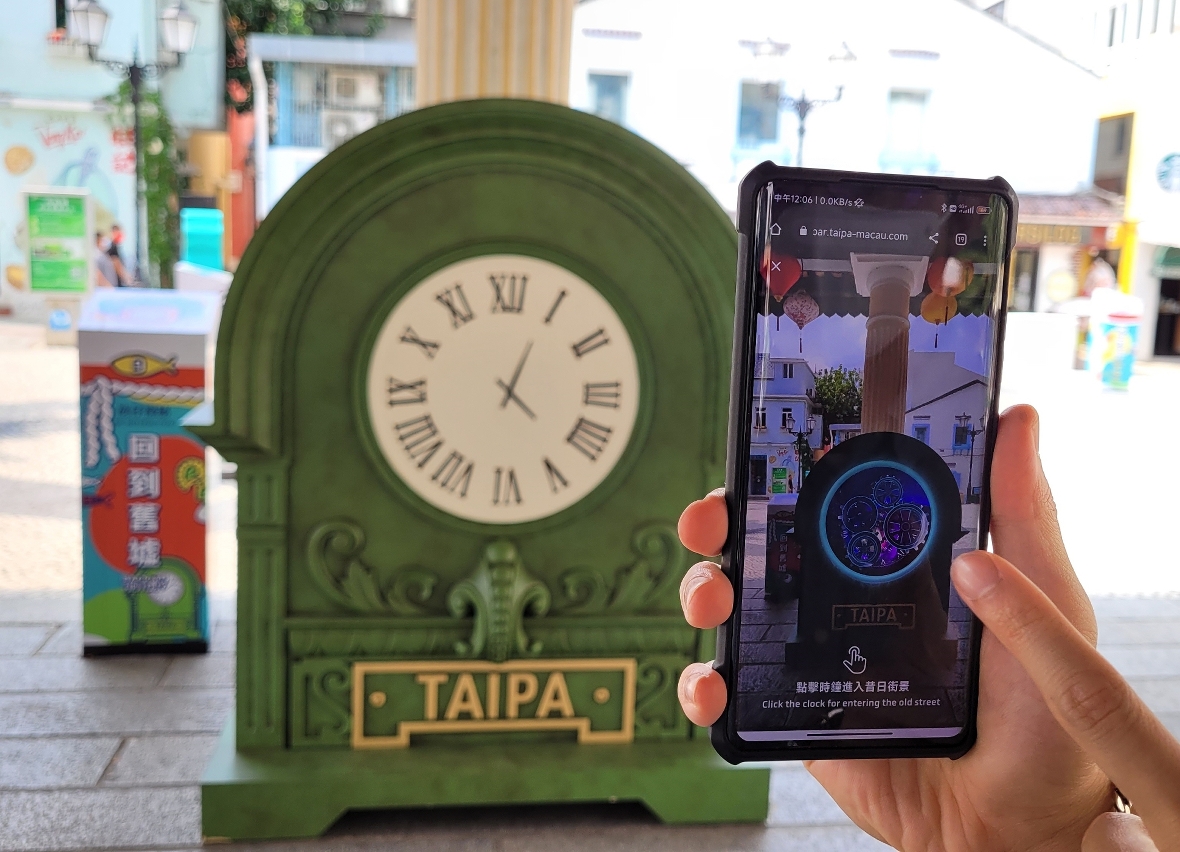 “悠氹仔”活动以“缤纷中葡”为主题,把繁花、许愿天灯、葡式青花砖、电车、中国龙、沙甸鱼等中葡文化的经典元素,融入到AR互动中,利用AR技术呈现氹仔城区的特色建筑及文物景点,增添市民和游客的玩乐趣味,吸引他们深入城区感受氹仔多元文化的魅力。