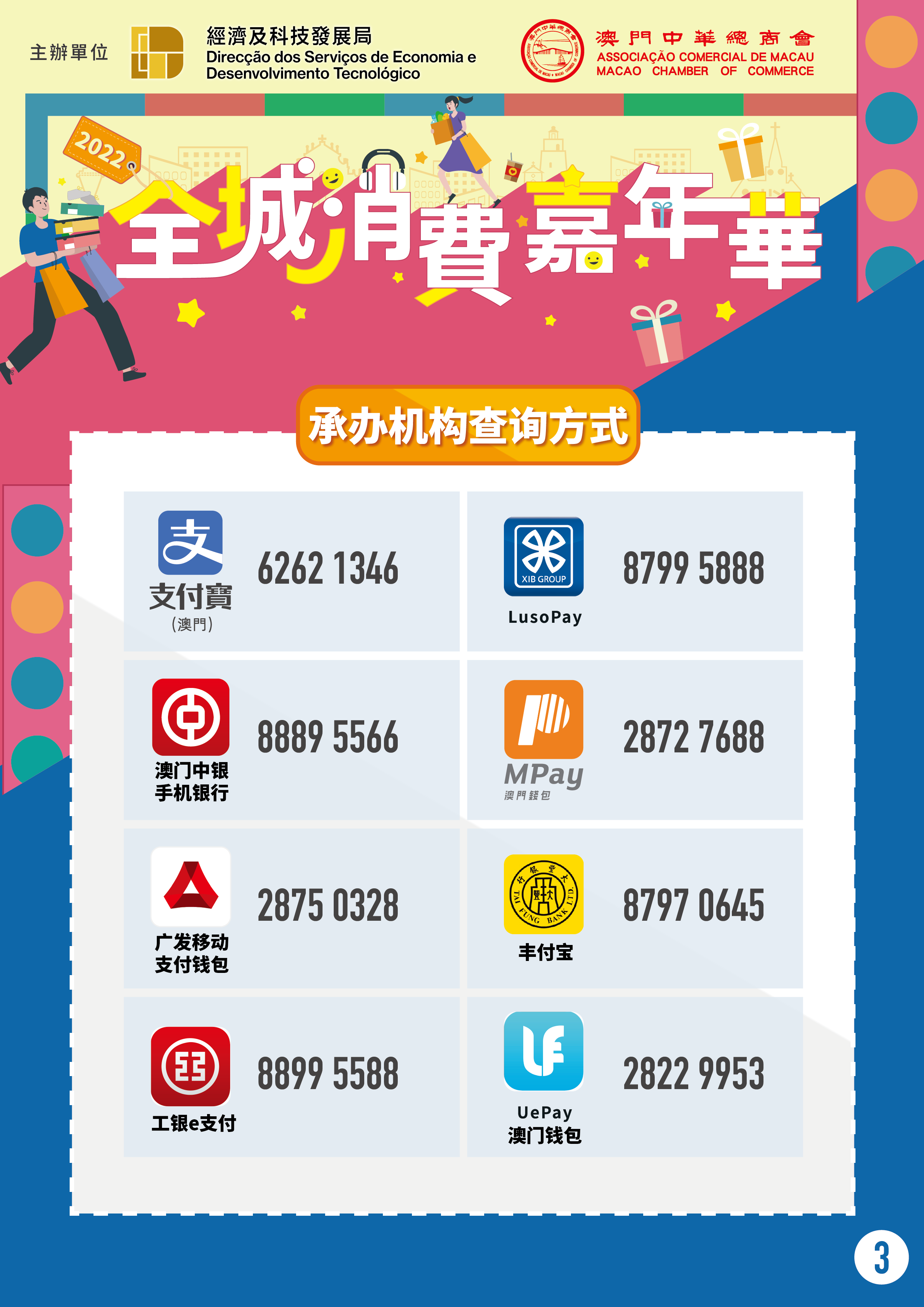 经科局自2016年起,与不同地区商会合作举办“社区消费嘉年华”系列活动,并取得一定成效。在此基础上,“2022年全城消费嘉年华"将扩大活动规模及覆盖面,在本澳多个地区商会及行业协会的配合和8家支付机构的支持下,将串联起各行各业共同参与,预计参与商户将超过2万家。