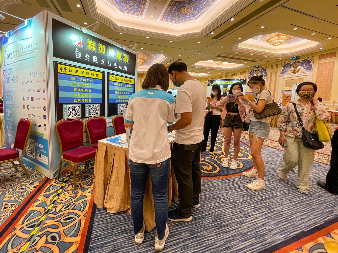 由劳工事务局、澳门中华新青年协会及澳门中华学生联合总会合办的“青年就业博览会2022”,今(8)日早上11时在威尼斯人米兰会议厅揭幕,参与活动人数众多,首日吸引逾千人次入场,企业即场面试约600人次。