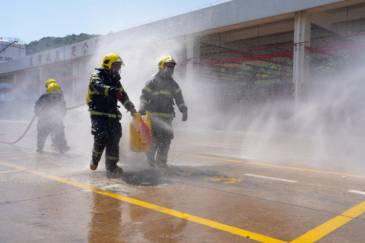 为加强九澳油库在发生紧急事故时的应变措施及沟通协调能力,消防局于本年10月12日上午,联同澳门油库管理有限公司在九澳油库举行联合消防演习,以提高事故发生时的救援效率。