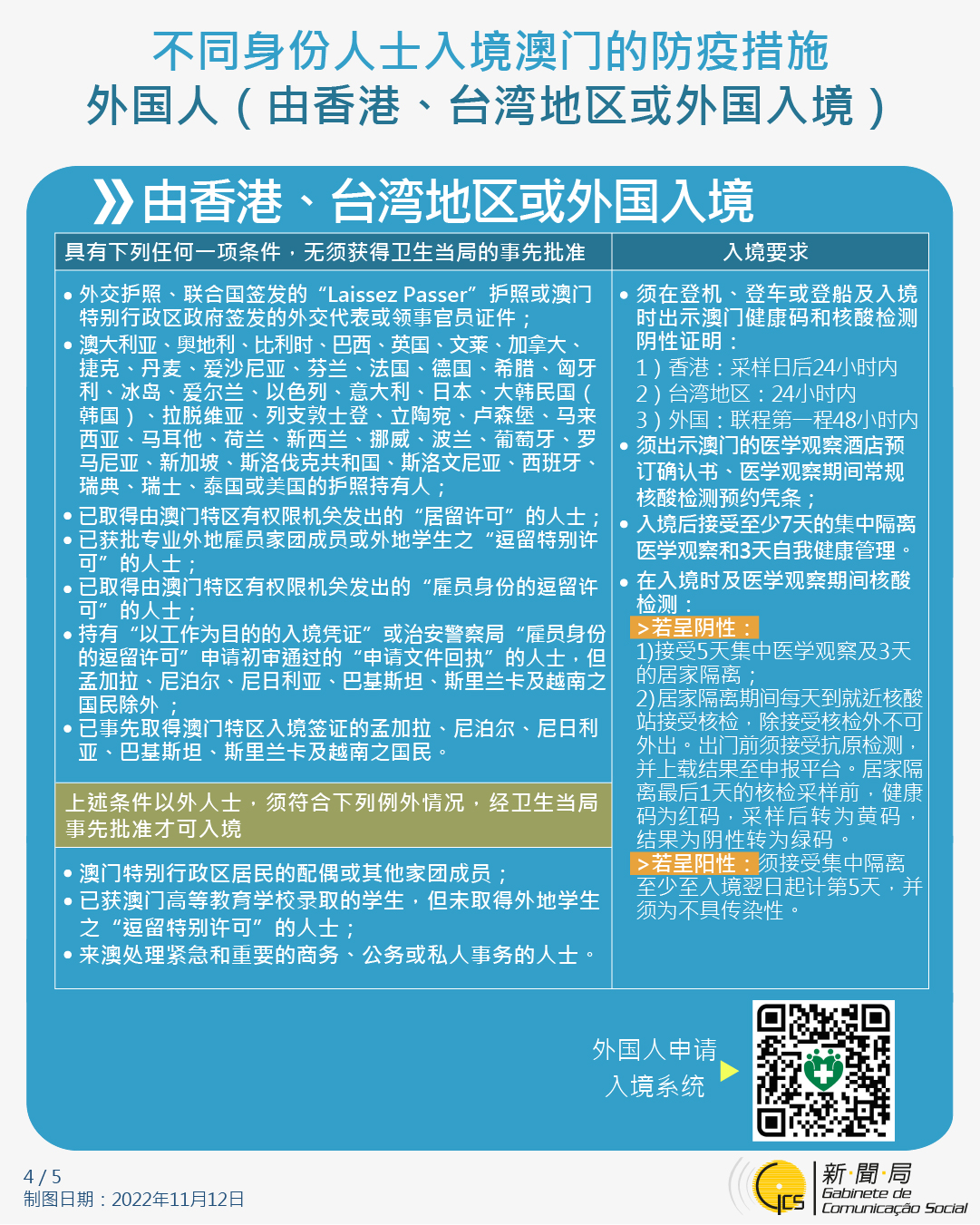【图文包】最新入境澳门的防疫措施 (2022/11/16)