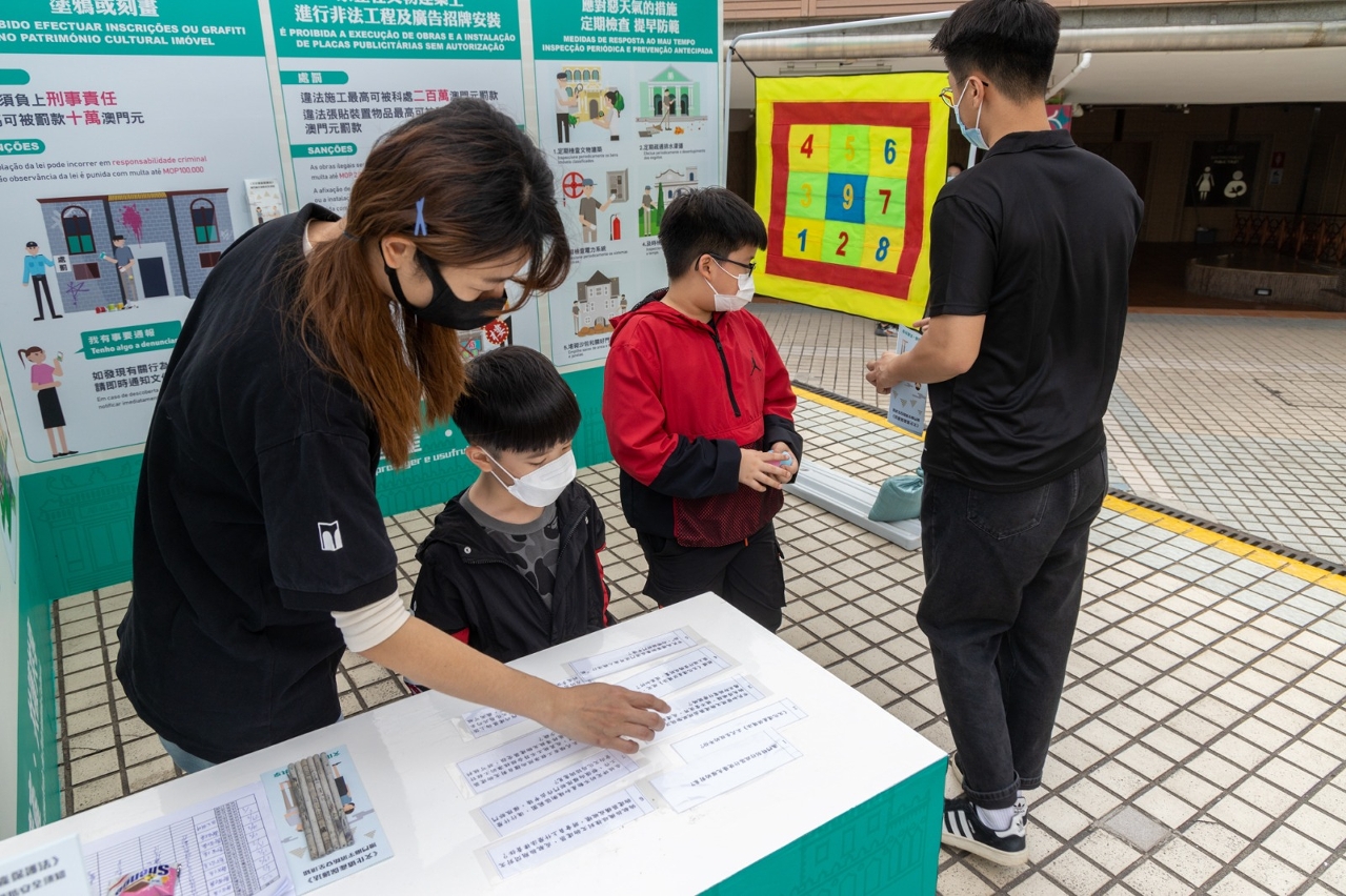 为向市民旅客宣导文化遗产保护讯息,文化局持续加强文遗普法力度,今年续于全澳各社区及旅游景点设置“文化遗产流动宣传站",结合摊位小游戏、漫画展板及亲子手偶小剧场,以轻松有趣的方式传递《文化遗产保护法》与日常生活相关的法律知识。
