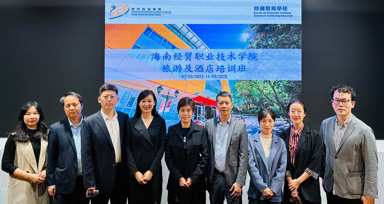 澳门旅游学院持续教育学校为海南经贸职业技术学院于3月7日至10日在望厦校区开设为期四天的“旅游及酒店”短期培训班。培训班成员包括海南经贸职业技术学院国际旅游学院王晓明副院长及专任教师。澳门旅游学院持续教育学校校长林静芝博士在开班仪式上表示,期望透过琼澳两地同业的相互交流,可以在旅游职业教育方面达到互相学习、共同提高专业素养的目标。