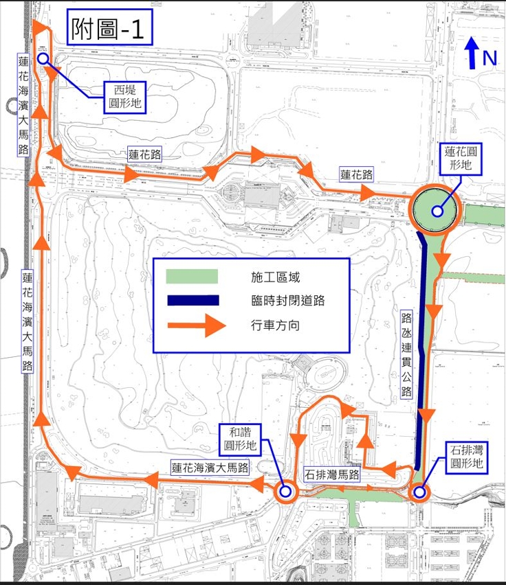 为配合轻轨石排湾主体建造工程相关高架桥桥段安装完成后拆除龙门吊机工作,将分别于2023年3月23、3月28日、4月2日、4月7日,每日凌晨2时至6时临时封闭路氹连贯公路北行线,届时驾驶者可使用莲花海滨大马路作为替代道路往前路氹城或氹仔市区。(详见附图1)