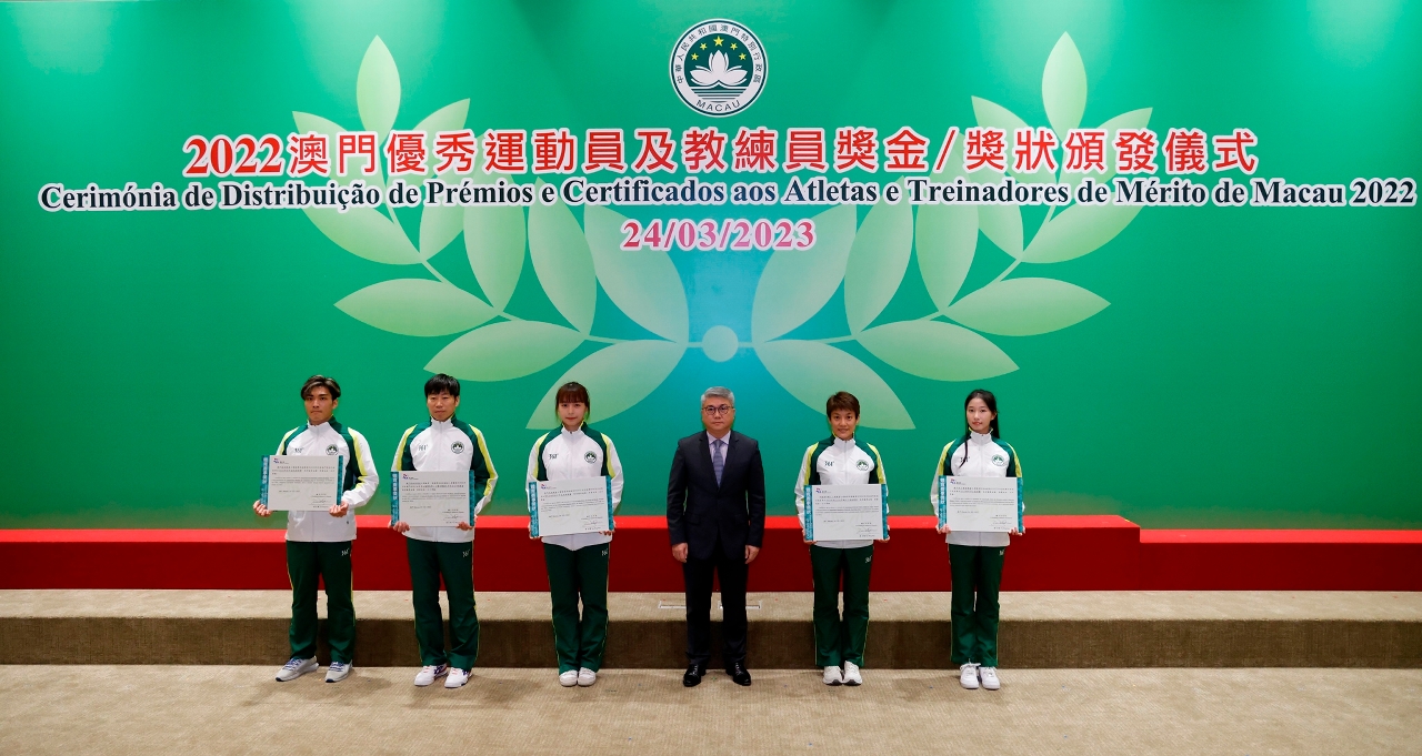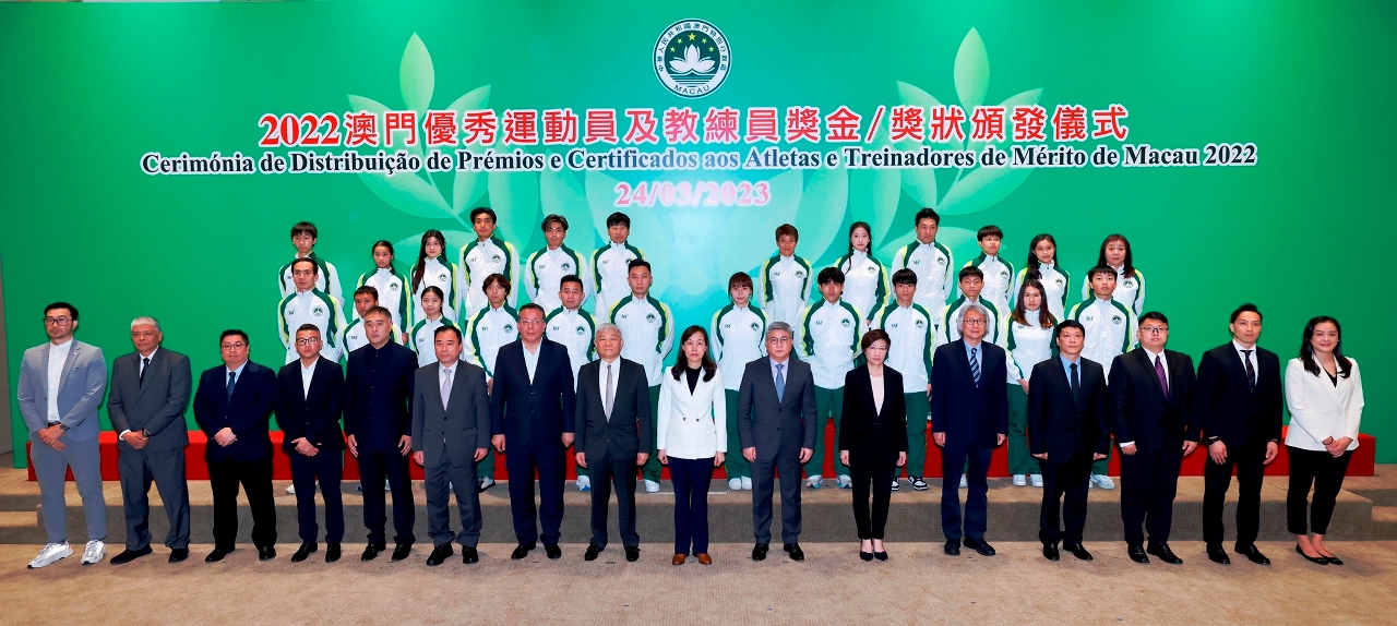 为表彰在2022年度参加体育比赛中获得优秀成绩的运动员及教练员,“2022澳门优秀运动员及教练员奖金/奖状颁发仪式”今(24)日晚上六时半于望厦体育中心会议室举行,社会文化司司长欧阳瑜等出席了颁发仪式,并祝贺获奖的队伍。