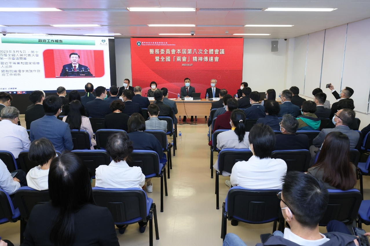 身兼澳区全国政协委员及医务委员会主席的罗奕龙,则重点介绍了国家在医疗卫生健康领域取得的主要成绩,国家经历三年疫情和过去五年关于医疗卫生的工作总结,包括国家因应疫情变化,不断优化调整防控措施,较短时间实现疫情防控平稳转段、新冠死亡率保持在全球最低水平、普及健康中国行动、促进中医药传承创新发展、组建国家疾病预防控制局健全重大疫情防控救治和应急保障体系等;并介绍了国家2023年的工作计划,包括疫情防控、基层医疗及全民健康的工作方向,期望藉此引起业界思考,在相关框架下,本澳医疗在哪些项目能与国家同步进行推动及发展;他又强调,医务委员会作为医疗业界的重要交流平台,可藉此次精神传达会,既可清晰未来工作方向,也能收集意见和建议,从而促进本澳医疗业界更好融入国家发展大局。