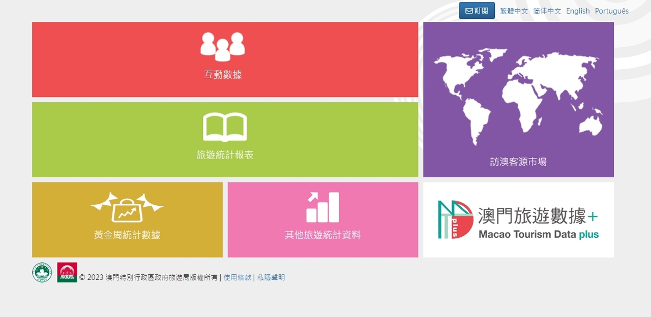 旅游局的数据优化工作,旨在让使用者能够深入瞭解澳门旅游市场的状况,并根据自身需求进一步处理和利用数据。欢迎各界登入网站:http://mtdplus.macautourism.gov.mo 或澳门旅游业界网站:http://industry.macaotourism.gov.mo 使用“澳门旅游数据+”,并提出改善意见。旅游局将持续推动行政工作电子化,提升服务质素,为各界提供更全面及便捷的旅游数据服务。