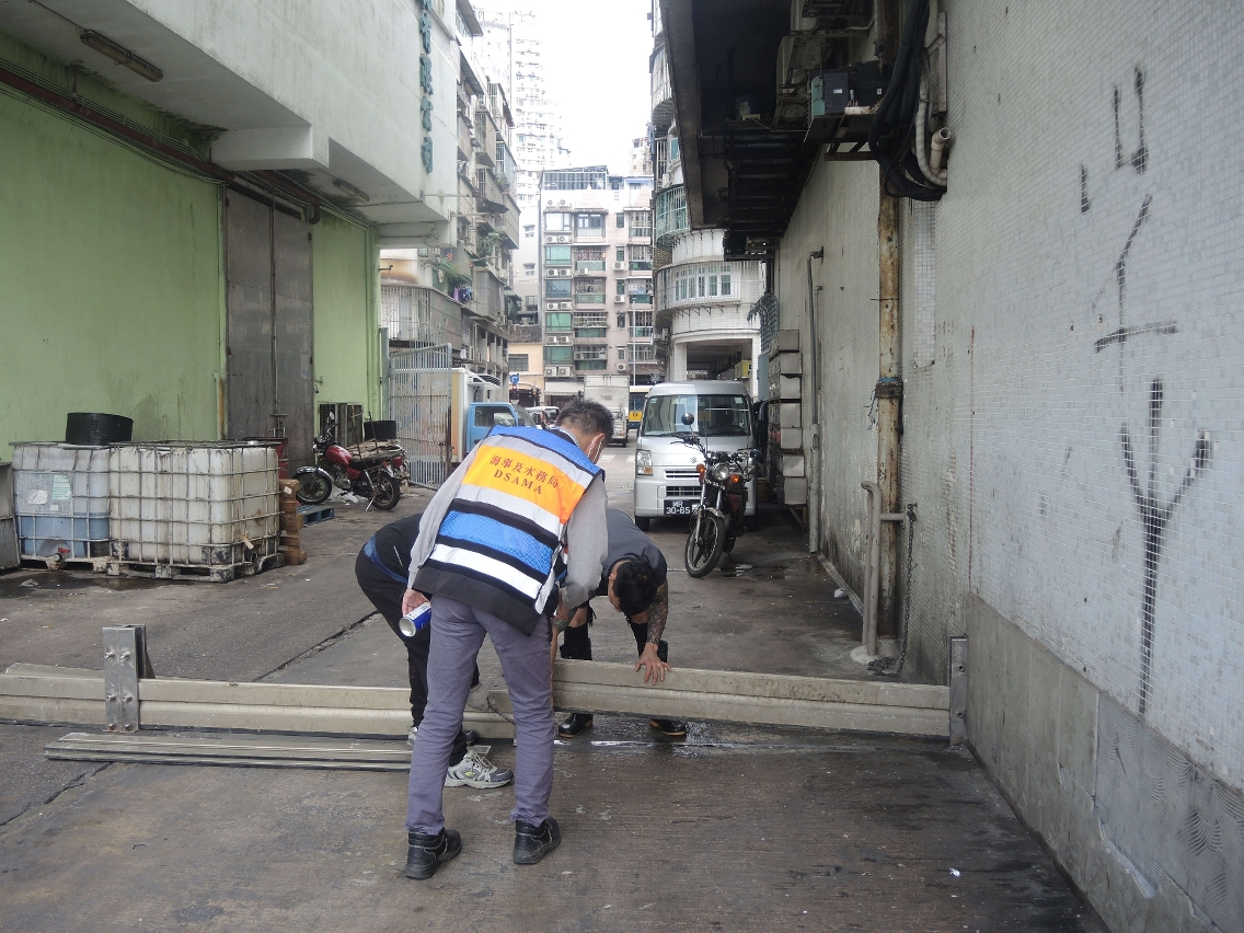 为配合内港临时防洪工程之实施,海事局已与内港各码头建立完善的预警紧急通报机制。当气象局发出黄色或以上的风暴潮警告,海事局会通知内港码头安装防水旱闸挡水板。