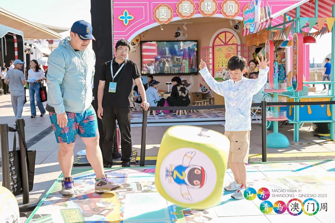 路展现场有不同互动游戏以提高大家的参与和投入度,参与者只要在“探秘寻宝地图”上的指定打卡点收集一定数量的印章,即可到“麦麦奇妙屋”兑换相应奖品,集齐一定数量的印章并透过社交平台(朋友圈、微博、抖音、小红书等)发布动态,再附带#探索澳秘之旅#、#山东‧青岛澳门周#话题标签,更可参加抽奖活动。此外,参与适合大人小孩动动身子的“跳房子趣味游戏”,可赢取精美的小礼品。