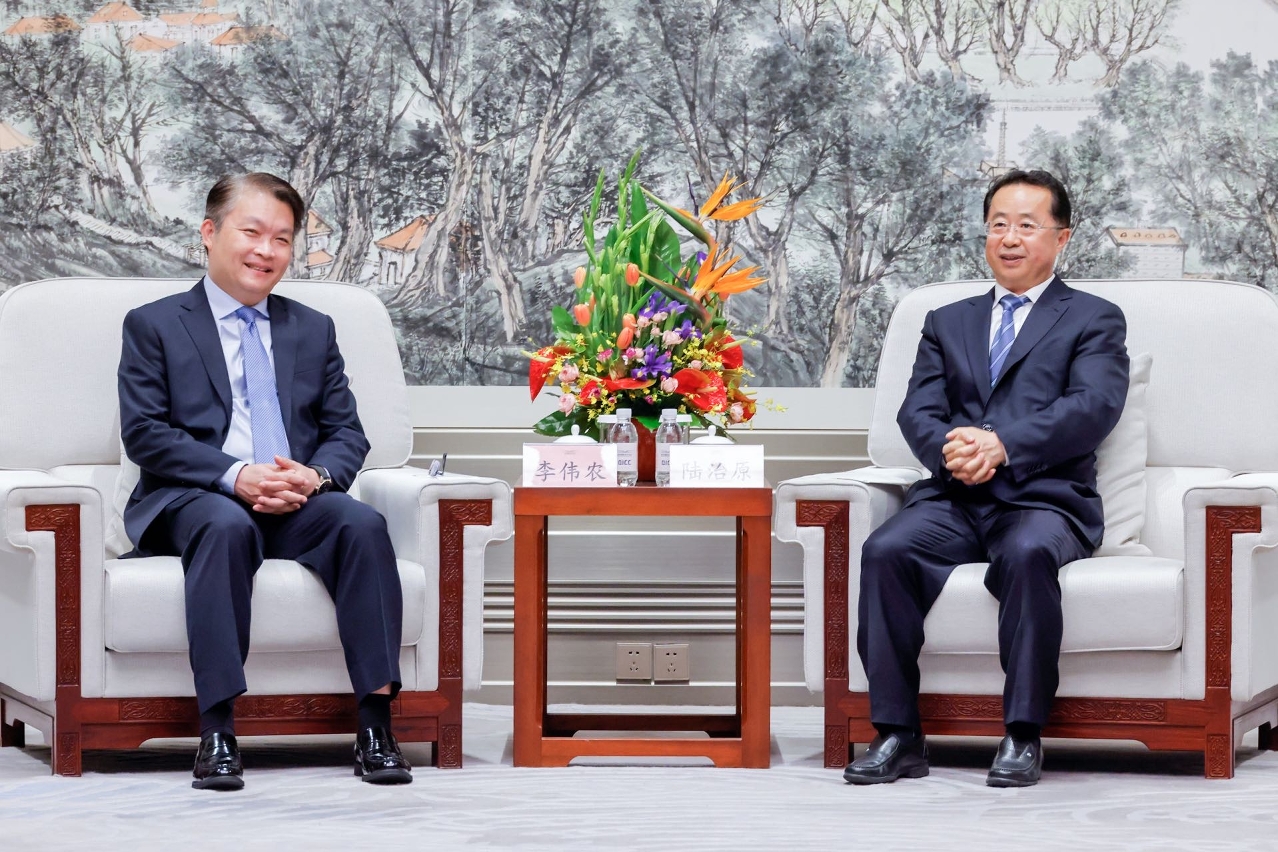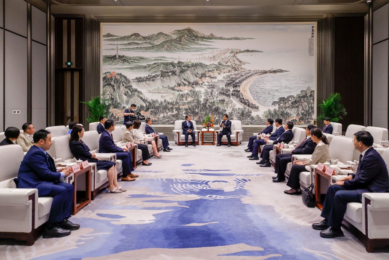 经济财政司司长李伟农于6月9日与山东省委副书记、青岛市委书记陆治原在“山东‧青岛澳门周”开幕式前会面,双方就鲁澳两地经贸、旅游、会展、科技、文化等多个范畴进行交流。