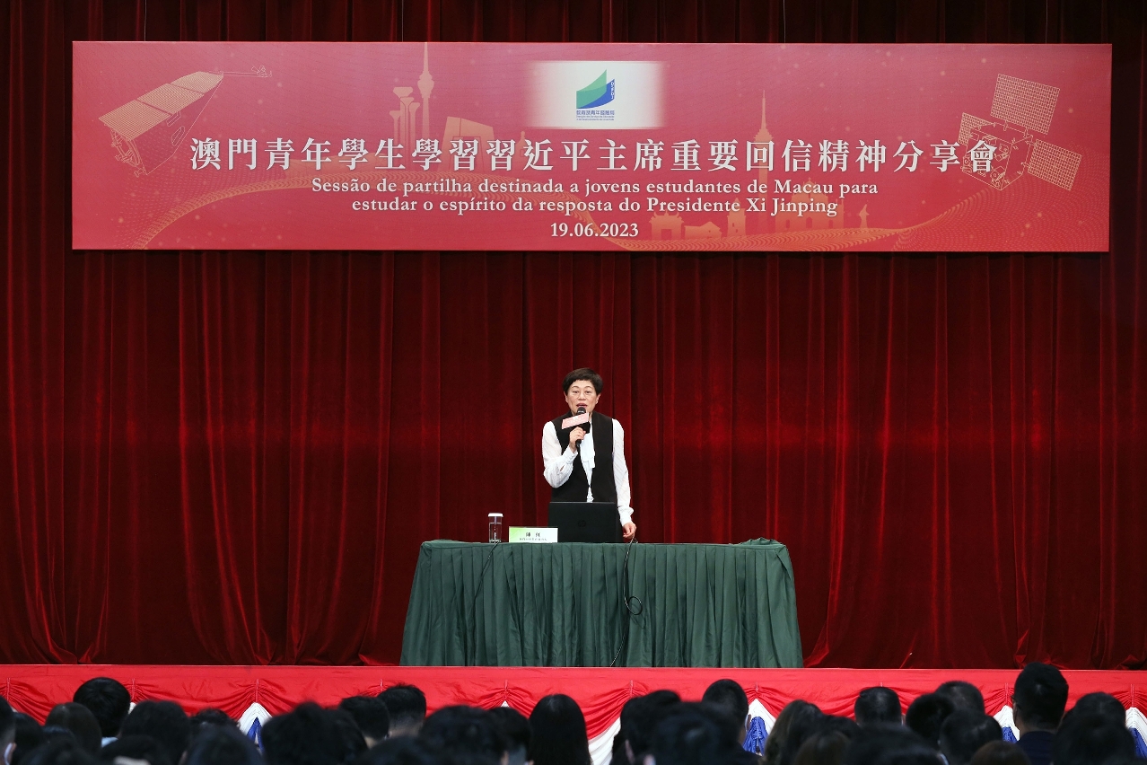 为向澳门青年学生传达和学习习近平主席重要回信精神,提升其对航天科学的发展认识,教育及青年发展局于2023年6月19日假圣公会(澳门)蔡高中学(分校)举办“澳门青年学生学习习近平主席重要回信精神分享会”,邀请了澳门中华教育会会长陈虹、澳门青年联合会副理事长傅腾龙及澳门科技大学太空科学研究所空间大数据分析学硕士研究生孙照龙主讲及分享。出席嘉宾包括教青局副局长阮佩贤和黄嘉祺,中央人民政府驻澳门特别行政区联络办公室教育与青年工作部副部长石书正,教青局代副局长陈旭伟,各高等院校领导,非高等教育学校校长及代表,澳门高等教育发展促进会、澳门中华教育会、澳门天主教学校联会、澳门公职教育协会、青年社团代表,教青局一众主管人员,连同各校师生,共约500人参与。