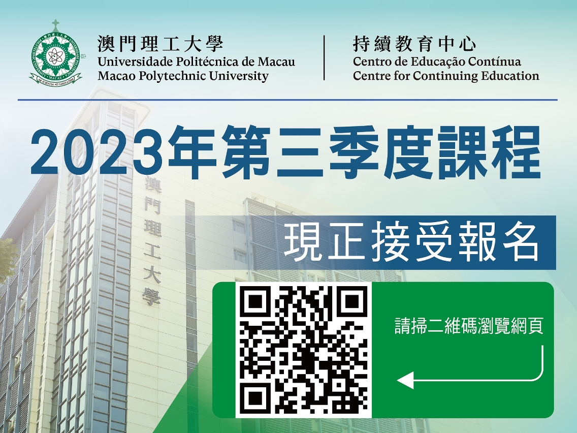因应本澳居民积极把握机遇,装备自我,提高个人竞争力、专业知识和能力,尤其对科技应用、公共行政实务、会展、艺术文创、社工实务等行业实务培训需求甚殷,澳门理工大学持续教育中心适时回应社会需求,将于2023年第三季开办十个不同系列、约三十项专业培训证书课程公开招生,范畴涵盖艺术和设计、科技及工程应用、公共行政、休闲旅游会展、社工专业、商业应用、金融管理以及语言传意等,现已接受网上报名。