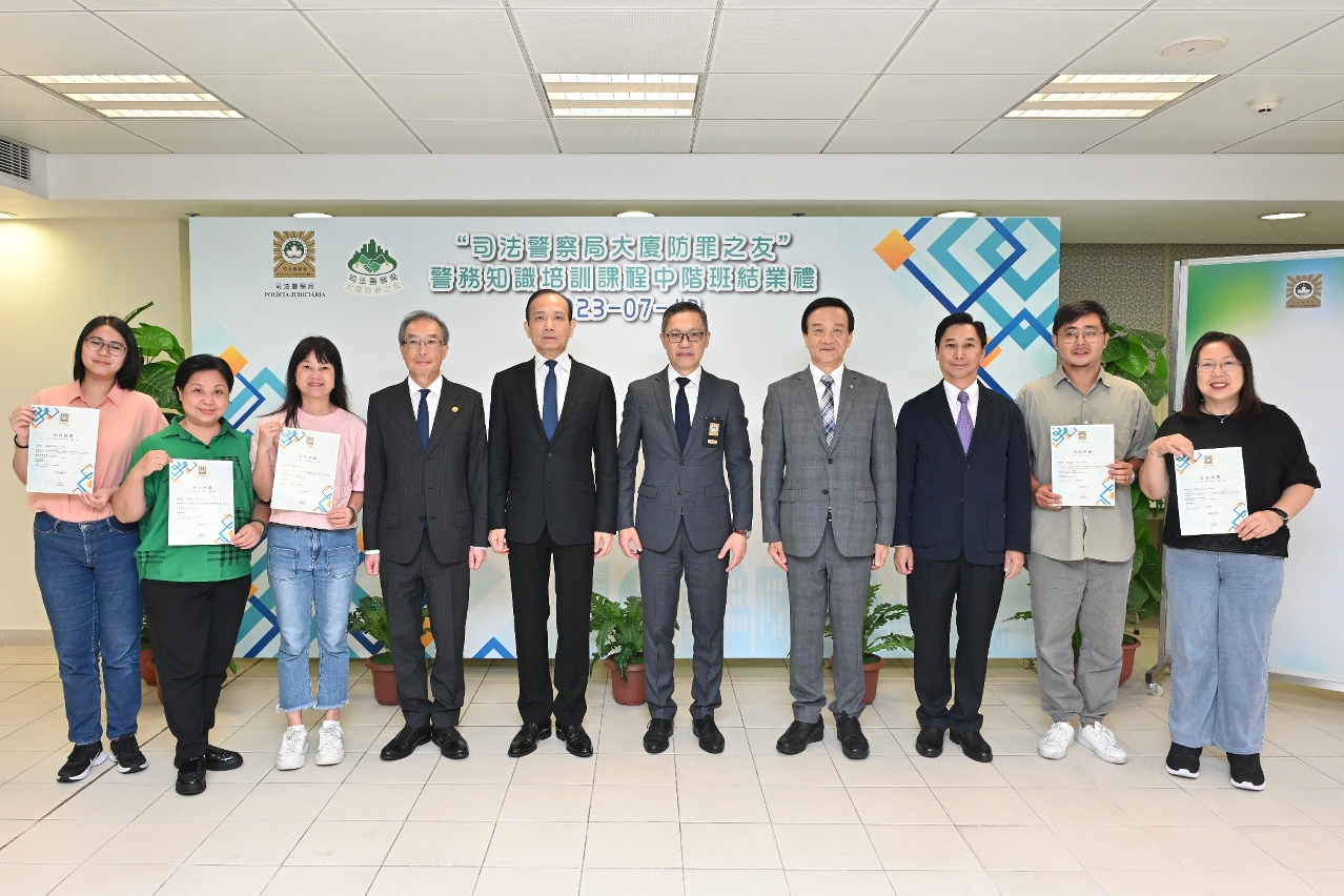 为增强本澳社团成员的防罪知识和能力,深化警民合作防罪灭罪的成效,司法警察局首次为社团领导层及资深会员举办“司警局大厦防罪之友警务知识培训课程社团中阶班",并于7月13日上午举行结业礼,共有29名来自本澳多个社团的骨干会员顺利完成课程,获颁发证书。